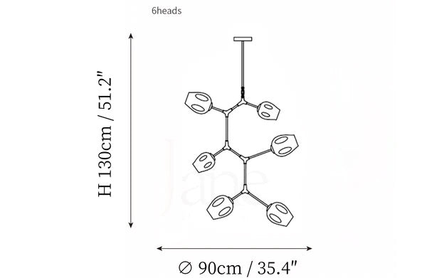 - 6 heads size: Dia 90cm x H 130cm / ∅ 35.4″ x H 51.2″