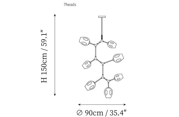- 7 heads size: Dia 90cm x H 150cm / ∅ 35.4″ x H 59.1″