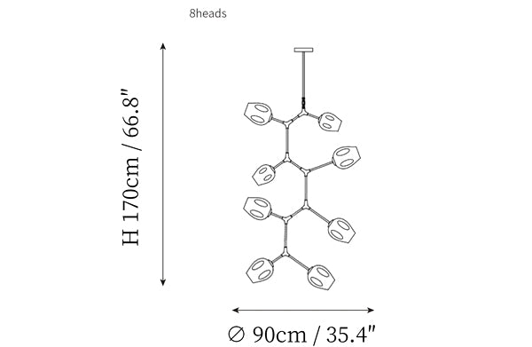 - 8 heads size: Dia 90cm x H 170cm / ∅ 35.4″ x H 66.8″