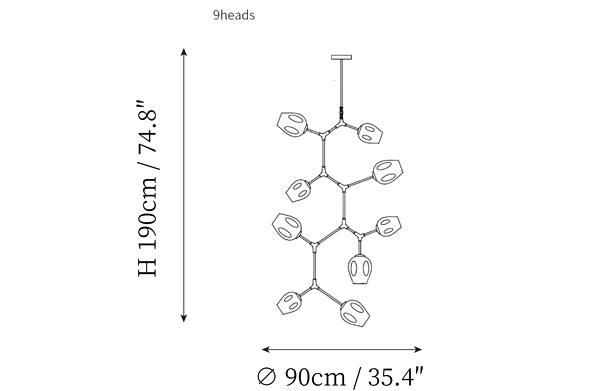 - 9 heads size: Dia 90cm x H 190cm / ∅ 35.4″ x H 74.8″