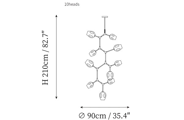 - 10 heads size: Dia 90cm x H 210cm / ∅ 35.4″ x H 82.7″
