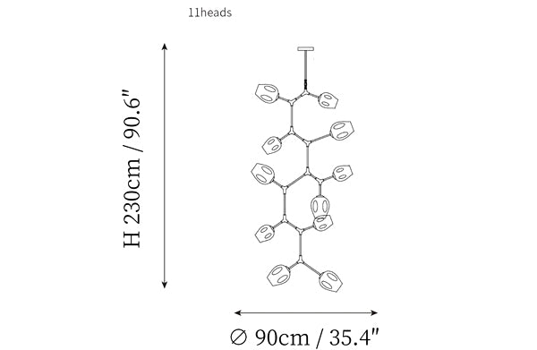 - 11 heads size: Dia 90cm x H 230cm / ∅ 35.4″ x H 90.6″