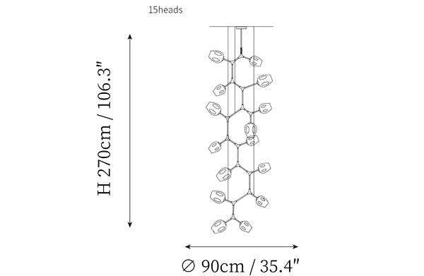 - 15 heads size: Dia 90cm x H 270cm / ∅ 35.4″ x H 106″