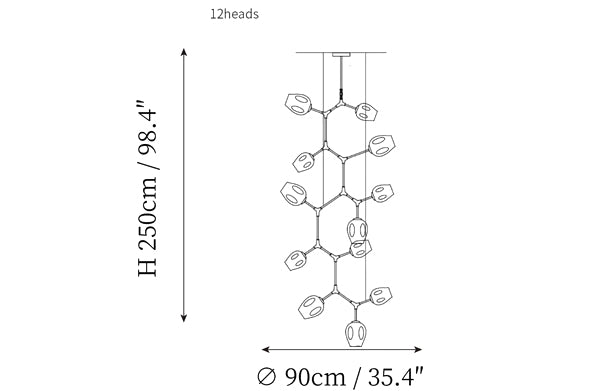 - 12 heads size: Dia 90cm x H 250cm / ∅ 35.4″ x H 98.4″