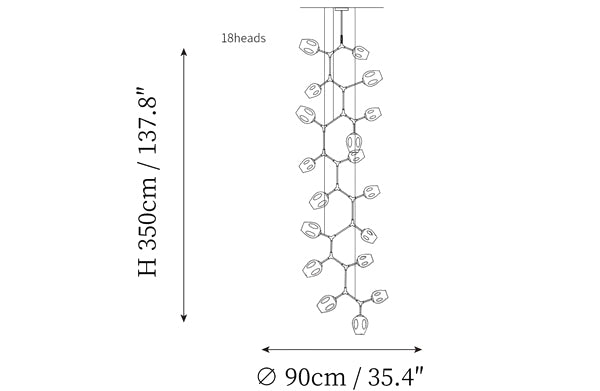- 18 heads size: Dia 90cm x H 350cm / ∅ 35.4″ x H 137″