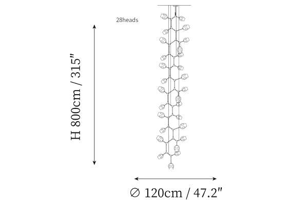 - 28 heads size: Dia 90cm x H 800cm / ∅ 35.4″ x H 315″