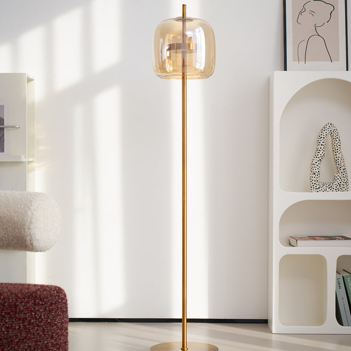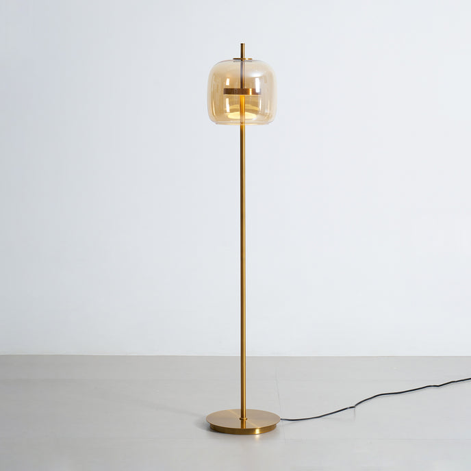 The Brevin Floor Lamp by Mooijane captures vintage charm through its elegant blown-glass design. Two seamlessly joined glass forms create a smooth, sculptural silhouette with subtle tone-on-tone hues that enhance its refined character. The result is a luminous, graceful piece that adds warmth and sophistication to any interior—perfect for living rooms, reading corners, or stylish lounges.