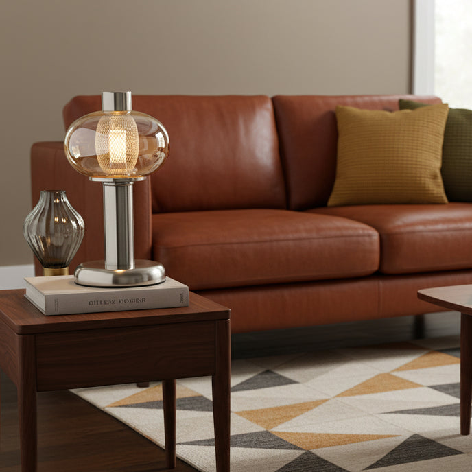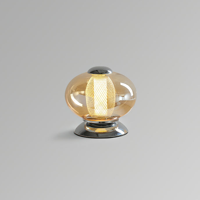 The Briloner Table Lamp by Mooijane showcases modern elegance with its smooth, rounded form and refined materials. Crafted from iron and amber-tinted glass, it features a sleek metallic base and a delicate inner mesh that diffuses light into a warm, layered glow. Sophisticated yet contemporary, this lamp adds a touch of understated luxury to bedside tables, desks, or living room spaces.