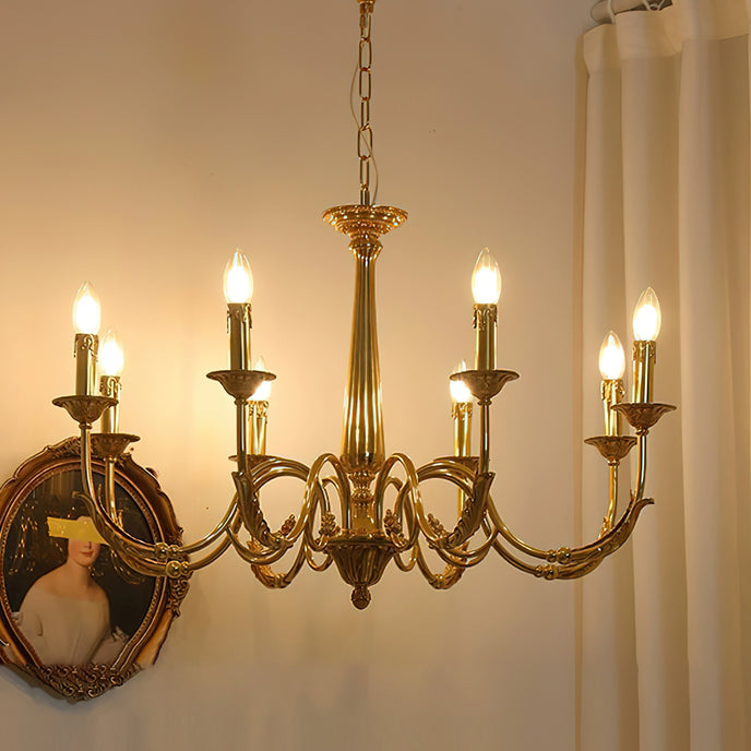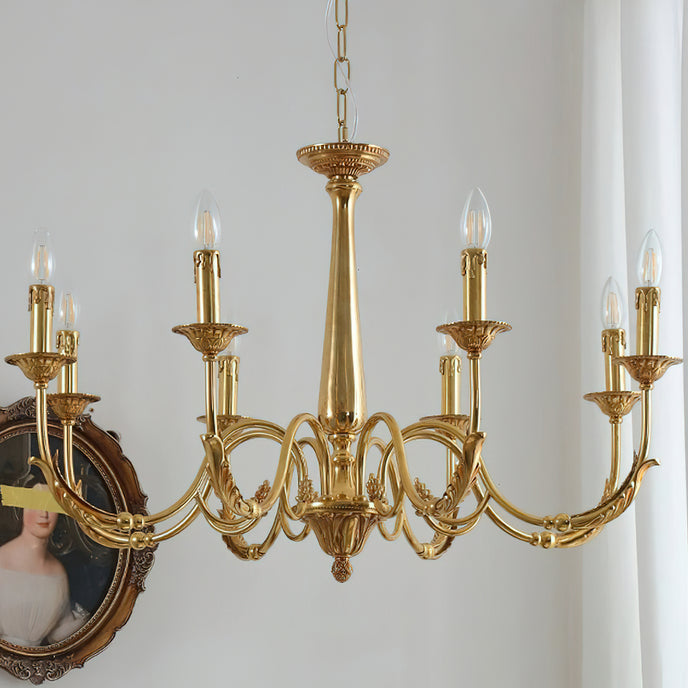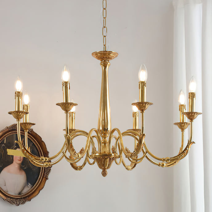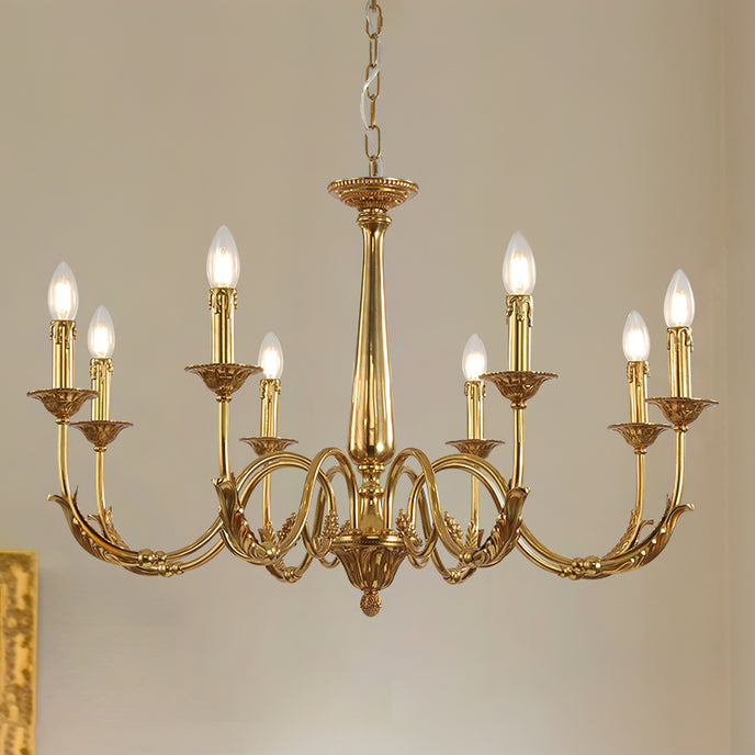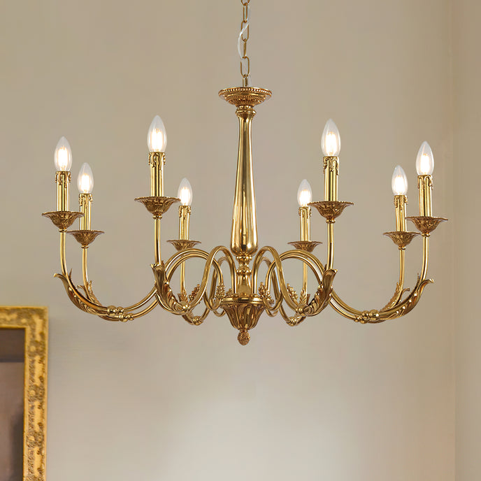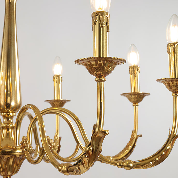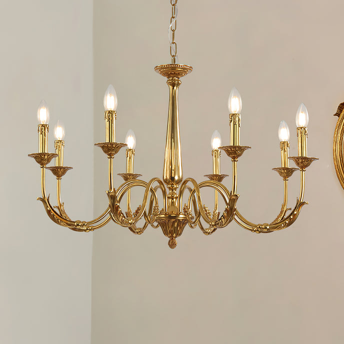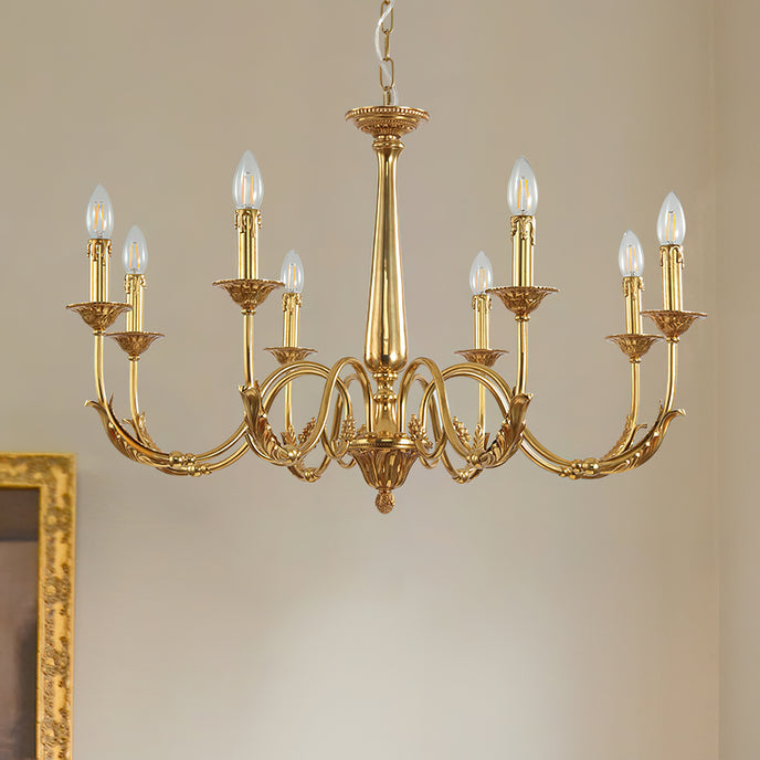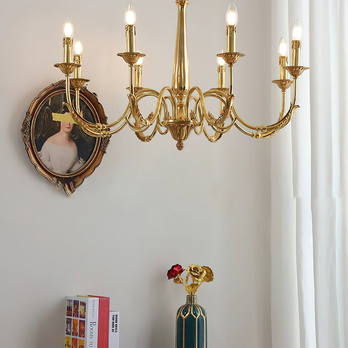 Enhance any space with our elegant Candle Brass Chandelier. Crafted from solid brass for a lasting touch of luxury, its classic American candle design creates a timeless atmosphere in any room. Make a sophisticated statement with this exclusive addition to your decor.