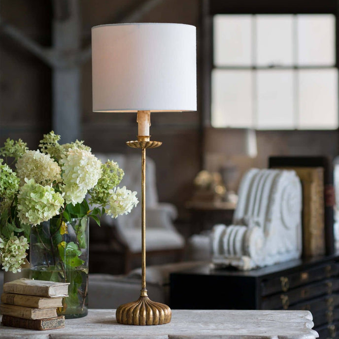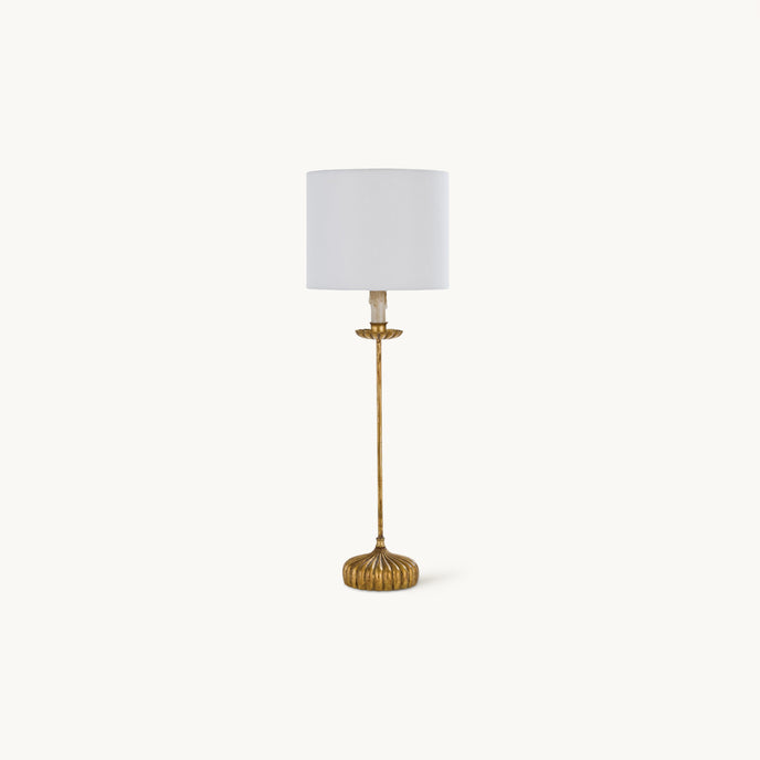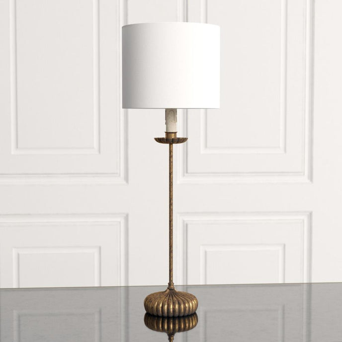 The Carson Table Lamp from Mooijane adds a touch of timeless elegance to any space. Featuring a dramatic base finished in antiqued gold, this lamp exudes sophistication and refinement. A crisp white shade perfectly complements the base, creating a balanced, stylish look that enhances any décor.