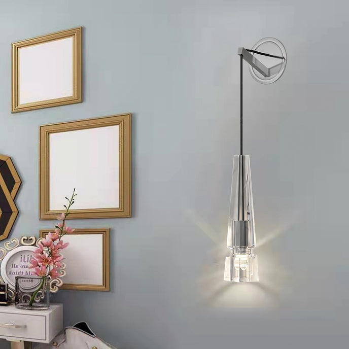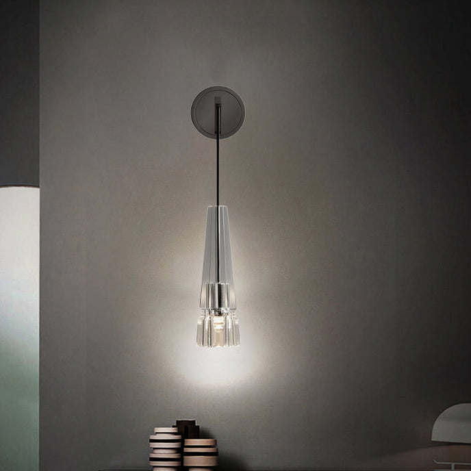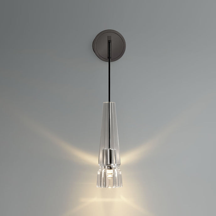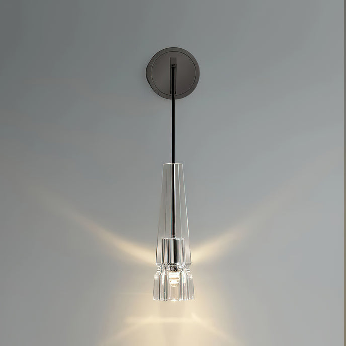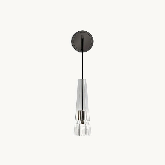 The Chamonix Sconce is made of lead crystal. Each crystal shade is made by hand. The metal backplate and stem are machined and polished by hand from solid brass. The Chamonix Sconce reflects the modern style, enjoys a broad vision, makes the tired mind less depressed, and the atmosphere is more flexible and relaxed.