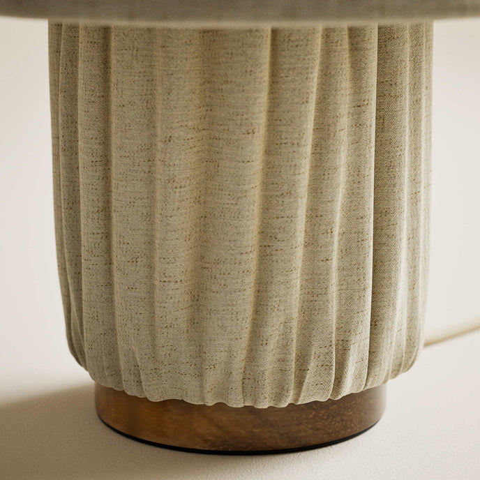 The Corrine Table Lamp by Mooijane, with its exquisite pleated design, creates a warm and inviting atmosphere in any space. Both the lampshade and base are crafted from soft, pleated fabric, resulting in a harmonious and unified design that adds texture while gently diffusing light. Simple yet stylish, and wonderfully comfortable, the Corrine table lamp is ideal for bedrooms, living rooms, or cozy reading nooks, effortlessly adding charm and elegance to your home.