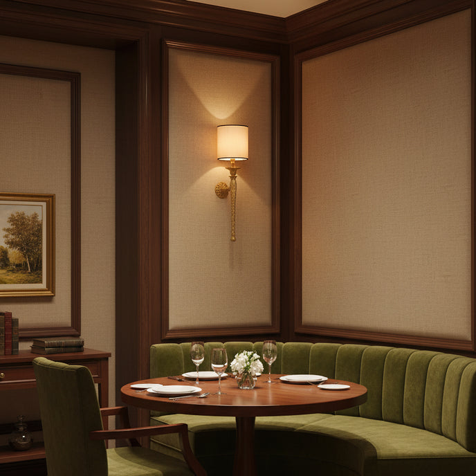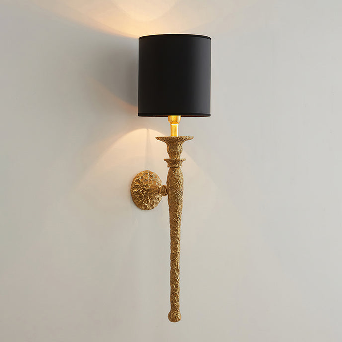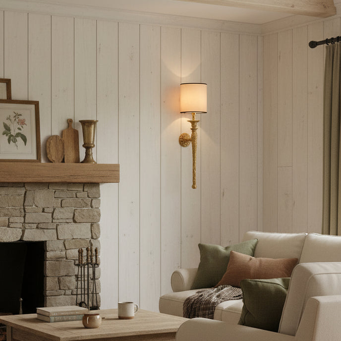 The Emily Wall Lamp by Mooijane blends sculptural elegance with timeless craftsmanship. Its hand-finished brass body features a rich, textured surface with a subtle antique luster, reflecting refined artistry. The cylindrical fabric shade gently diffuses light, casting a warm, graceful glow that enhances any interior with quiet sophistication. Perfect for entryways, hallways, or bedside spaces, this wall lamp adds understated luxury and classic charm to contemporary and traditional settings alike.