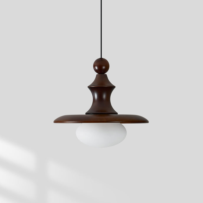 The Helios Pendant Lamp from Mooijane beautifully combines the warmth of wood with the sleek elegance of frosted glass. The sculpted wooden frame, with its graceful curves and bold shapes, adds an organic, timeless touch to any space. Beneath the wooden shade, the smooth glass globe gently diffuses soft light, creating a warm, inviting ambiance.