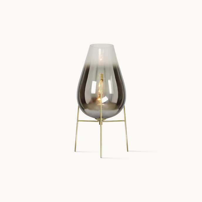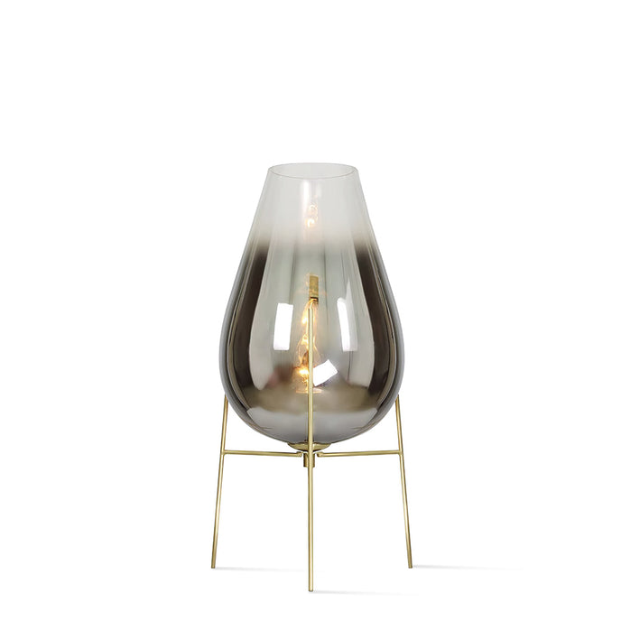 Accentuate the light and decor of a room with this table lamp. The gold-tone base is made of high-quality steel for durability, while the shade is made of translucent smoked glass. The unique design of the floor lamp is best suited for modern or industrial interiors.
