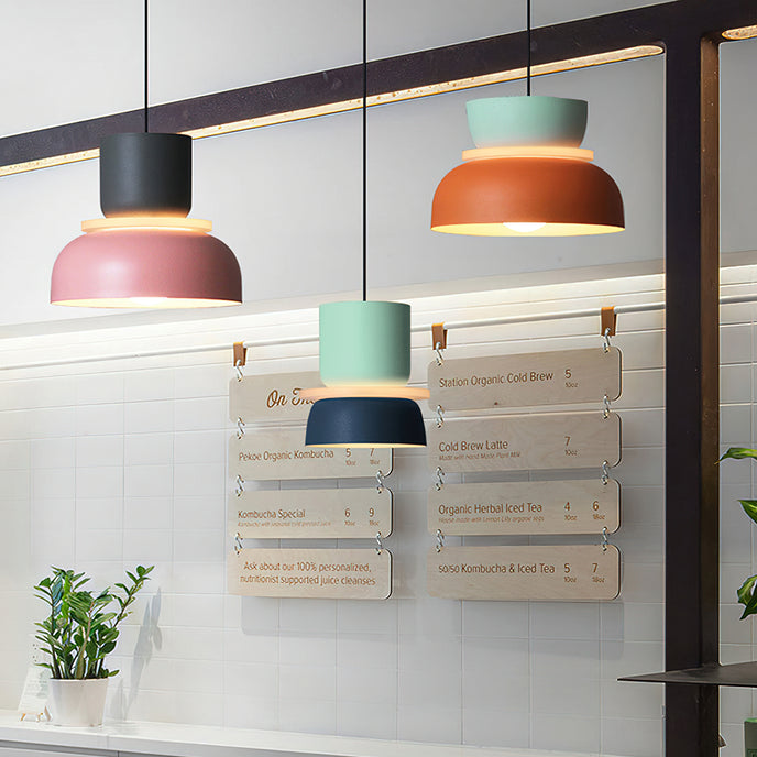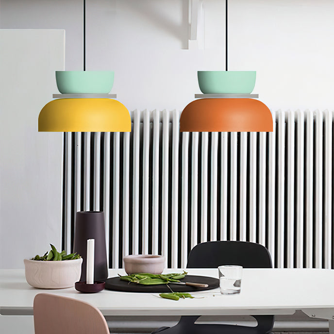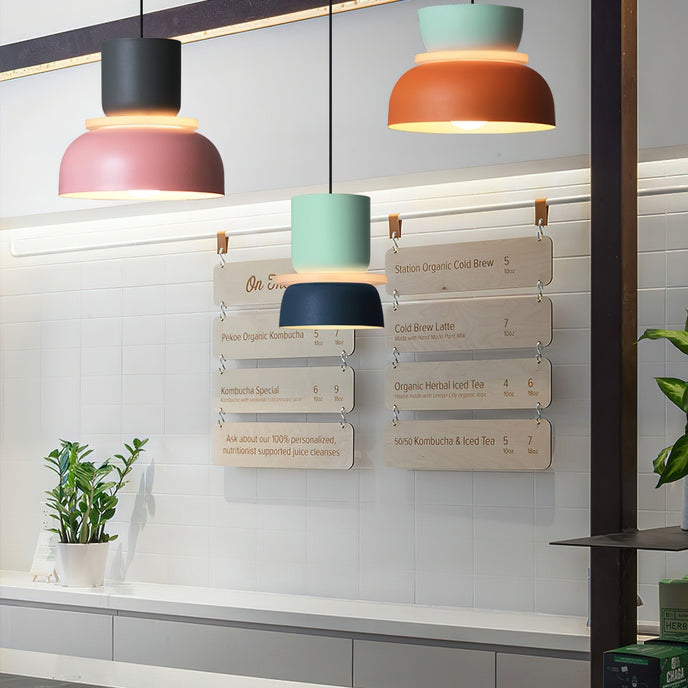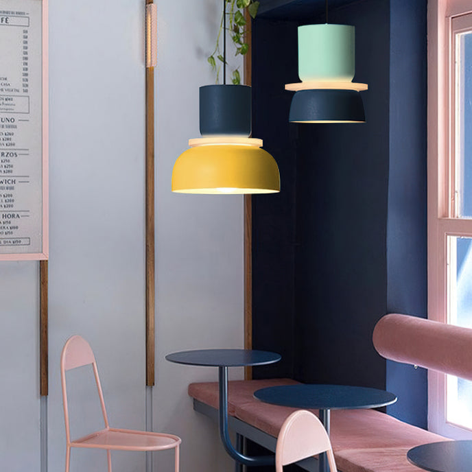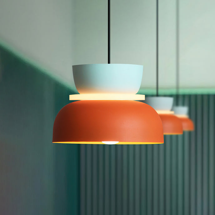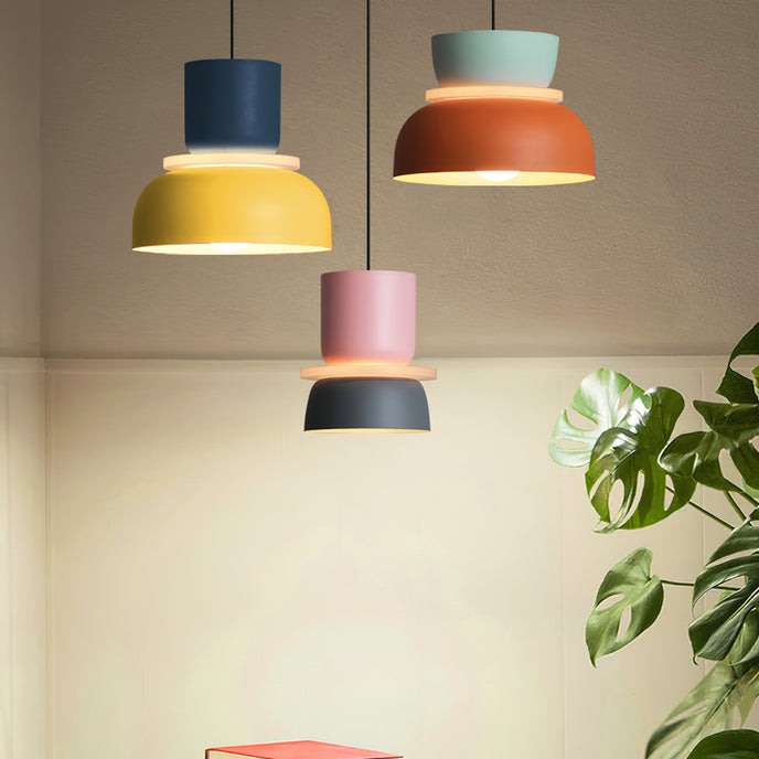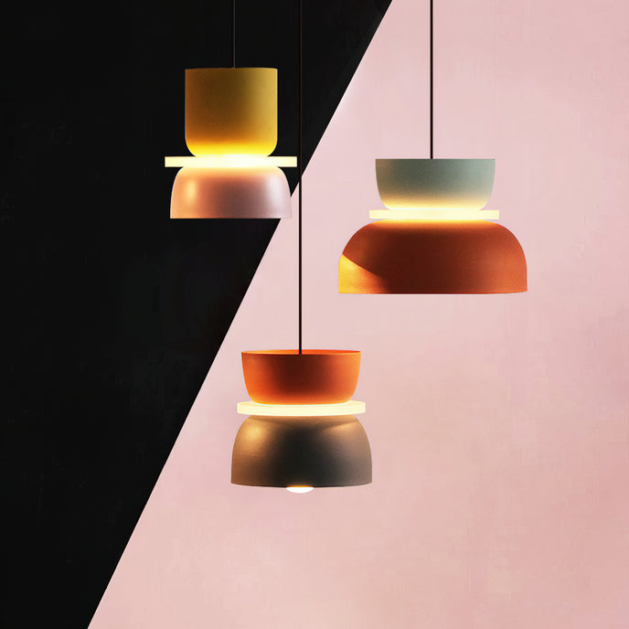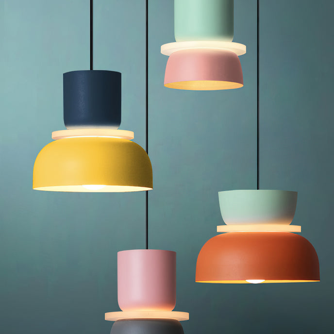 We at Mooijane present the Lucie Macaron Pendant Light, featuring a unique color-blocking design. This Nordic-style lamp adds a touch of modernity to your interiors. Its multi-layered lampshade not only adds style but also versatility. This acrylic colorful bowl-shaped lampshade chandelier combines form and function.