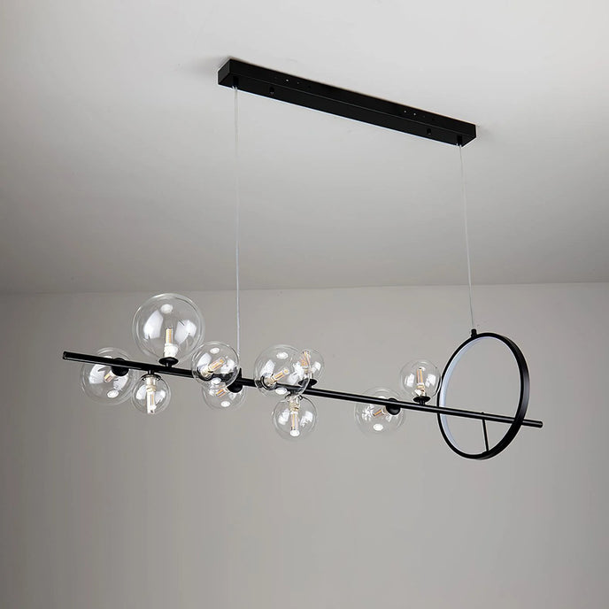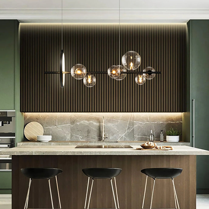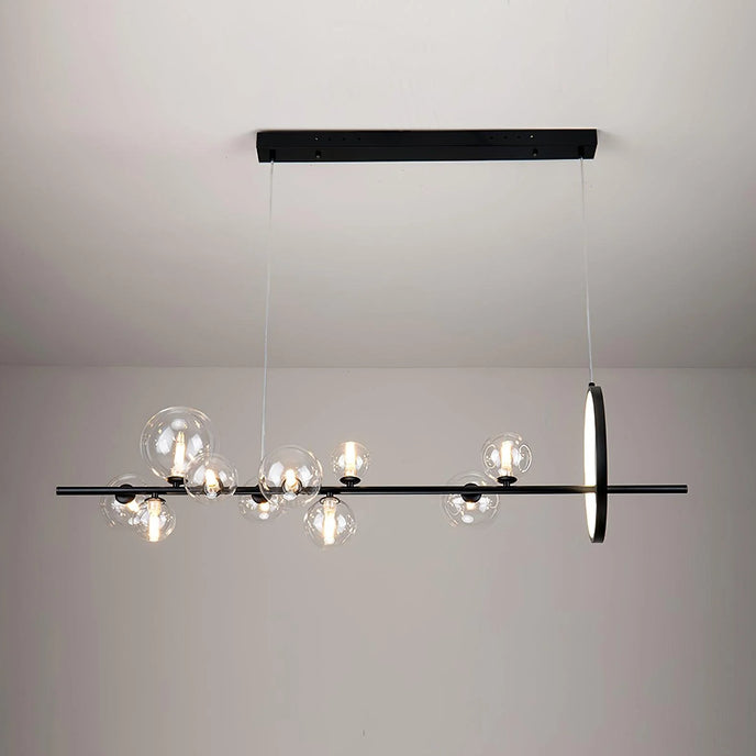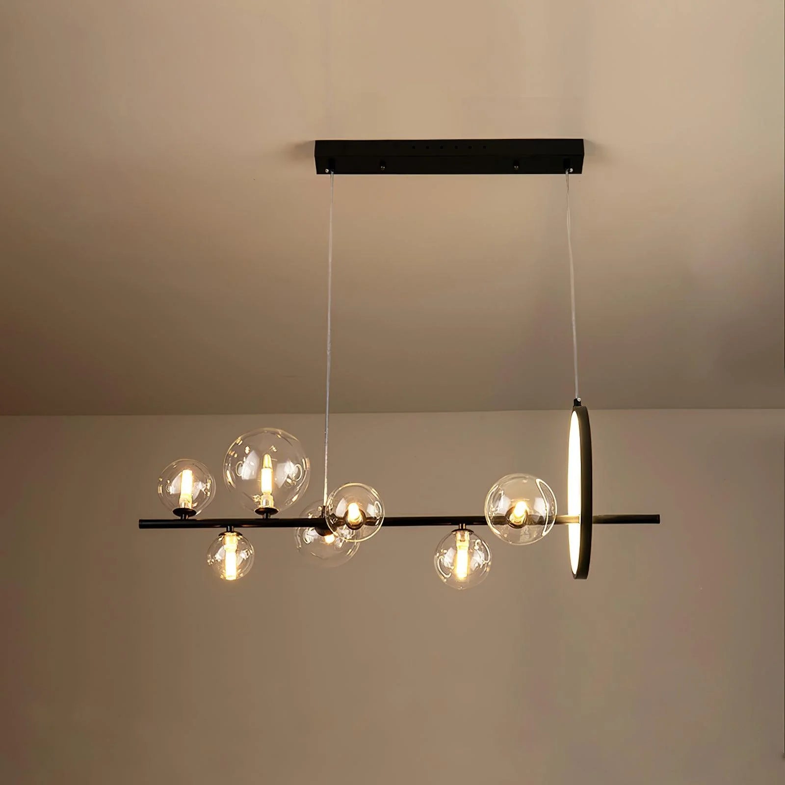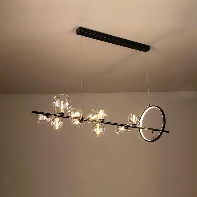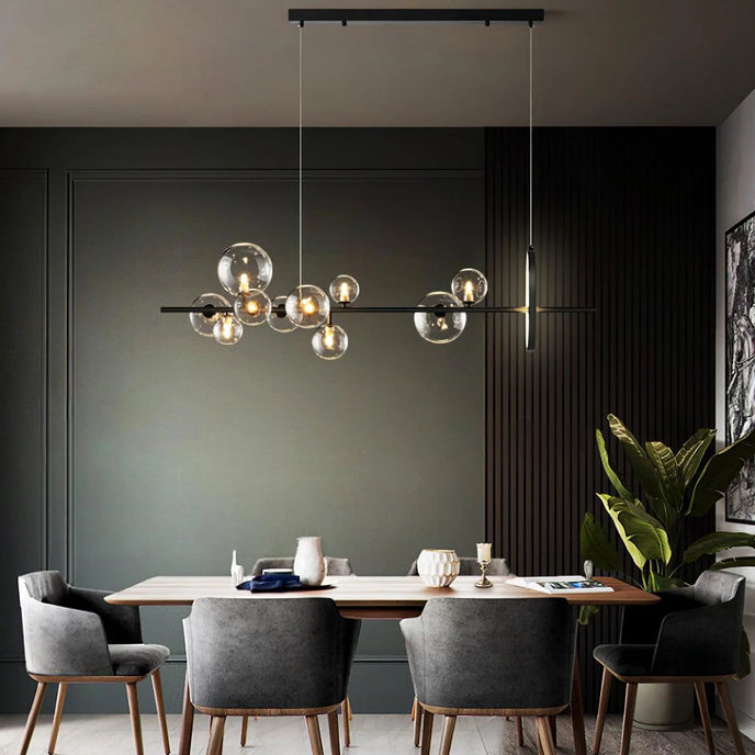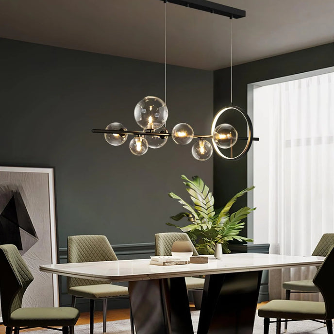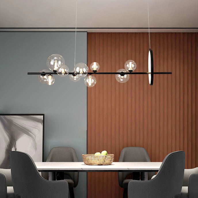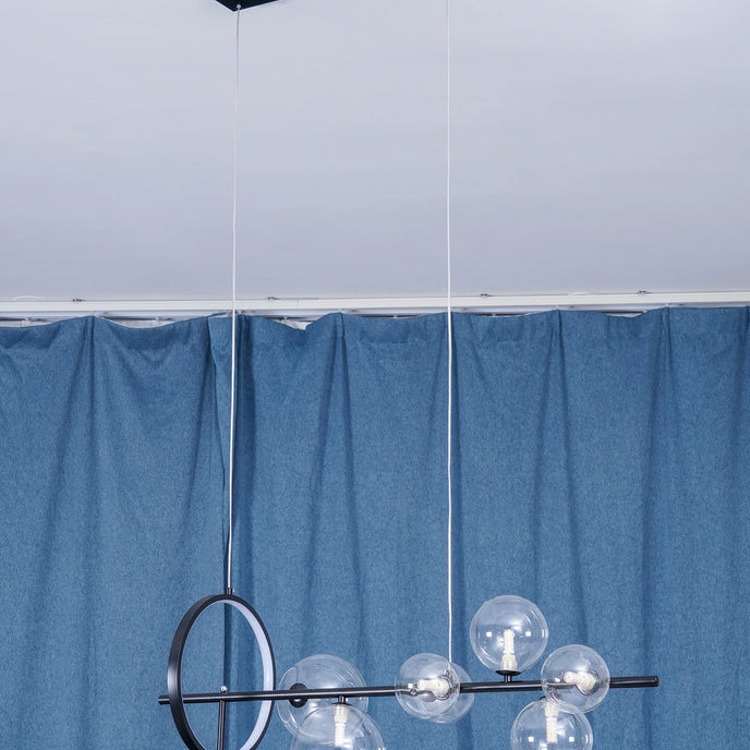 When it comes to lighting in the Scandinavian style, the reduced form and simple design are precisely the main features of the lamps. Our Glass Bubble Nordic Chandelier has striking glass balls as the dominant detail, which bring a modern design to any living room. The light combines a thin luminous LED circle and linear elements on which the glass lampshades are located.
