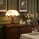 The Monika Table Lamp from Mooijane radiates vintage French charm with its perfect blend of patterned glass and solid wood. This exquisite lamp brings sophistication to any space, making it ideal for bedrooms, studies, or living areas. It emits a soft, romantic glow, creating an inviting atmosphere. With its unique design, the Monika Table Lamp adds an elegant touch to your home decor.
