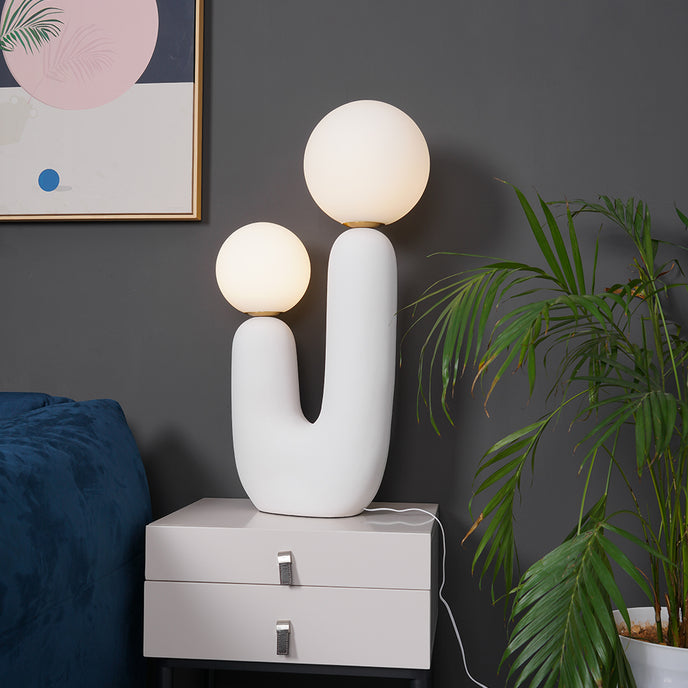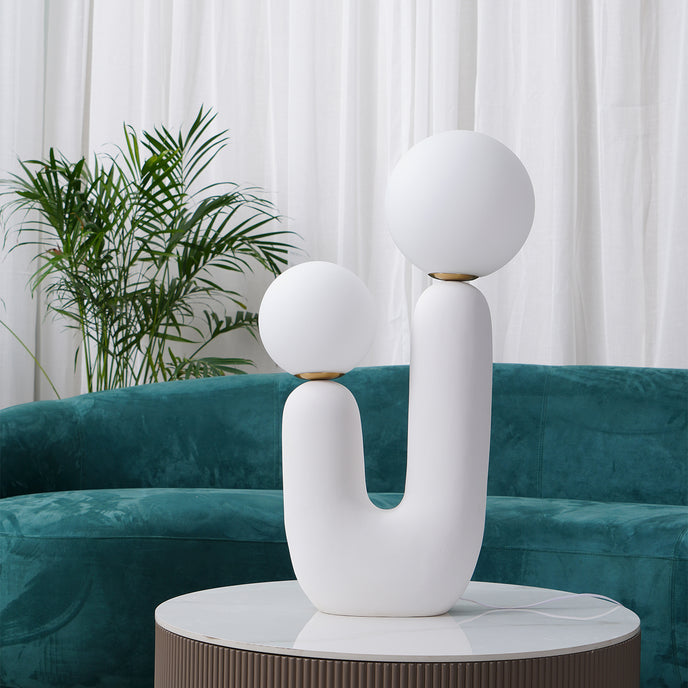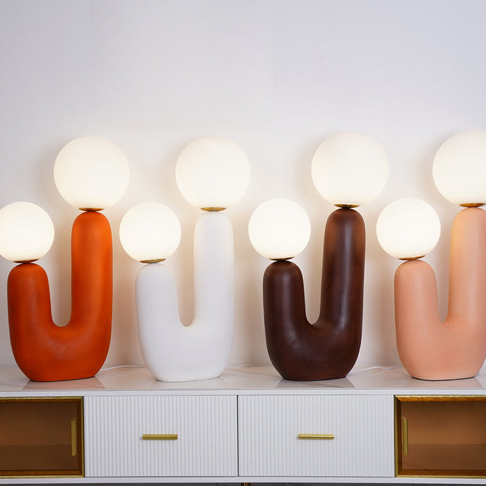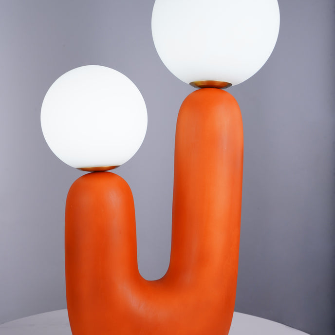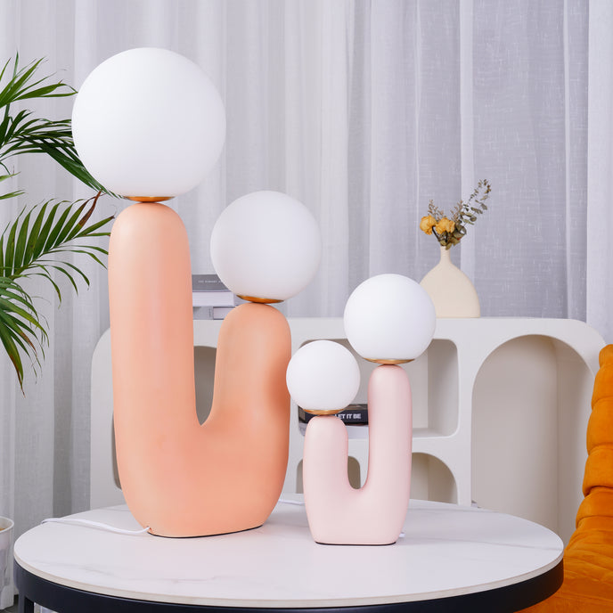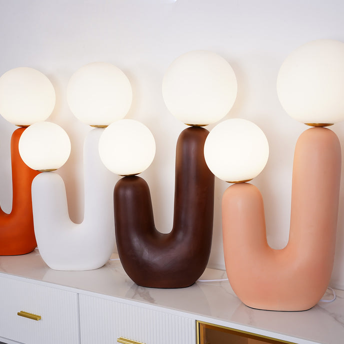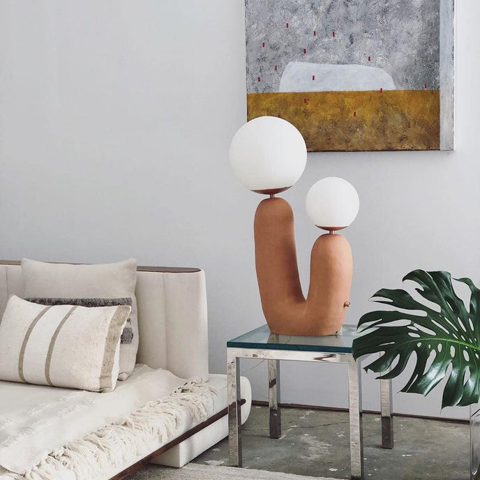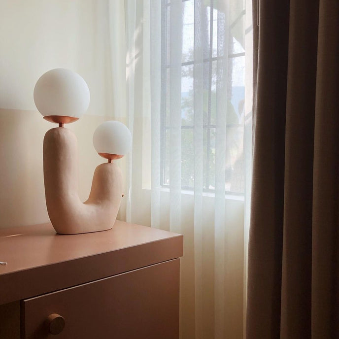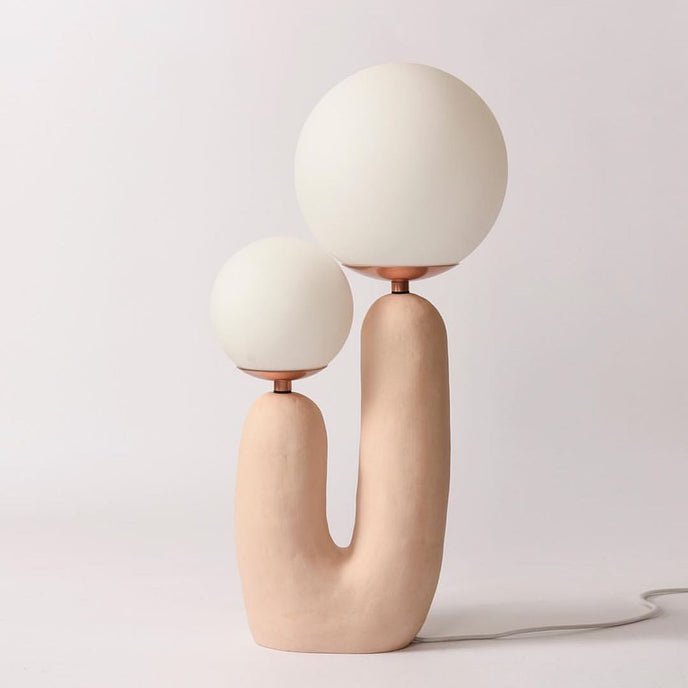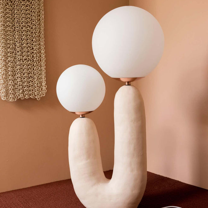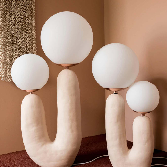 “Everyone thinks this iteration was directly inspired by cacti because of its shape and color, but, to be honest, we just wanted to make a larger size of our signature lamp,” “However, it looked very empty with just a single shade, so we filled it in with more bulbs.” With the exception of additional glass shades, the table lamp preserves the original light’s organic composition that’s meant to resemble the human body’s natural curves. The especially organic and sculptural form blends in with modern interiors. Soft fabrics, pastel colors, and ceramic surfaces create a magical combination.