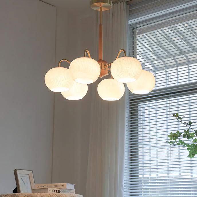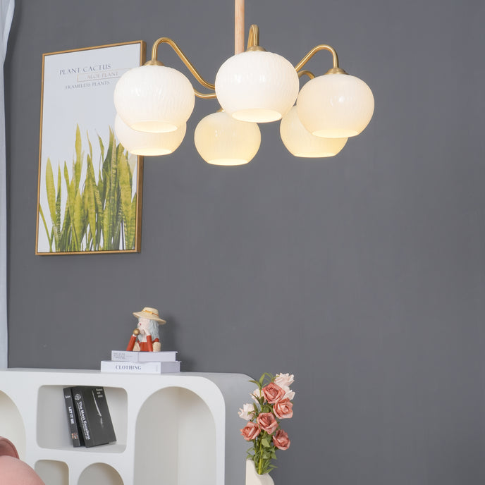 A beautiful and romantic persimmon chandelier, made of exquisite and beautiful glass, a brass chandelier, full of luxury, adding a warm atmosphere to your living room.