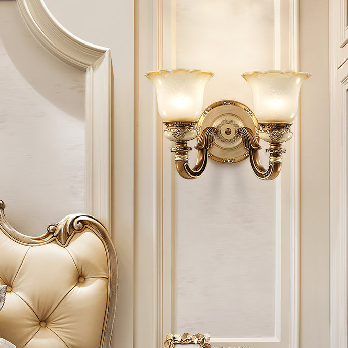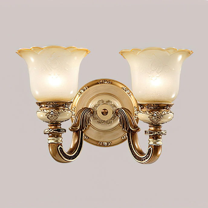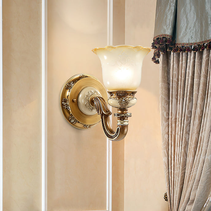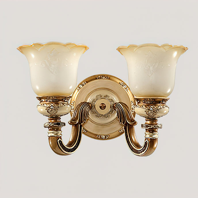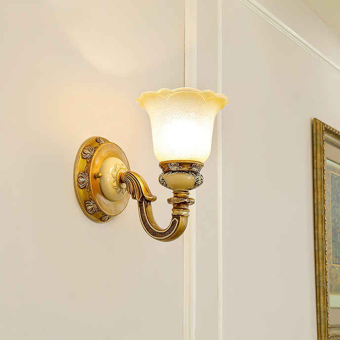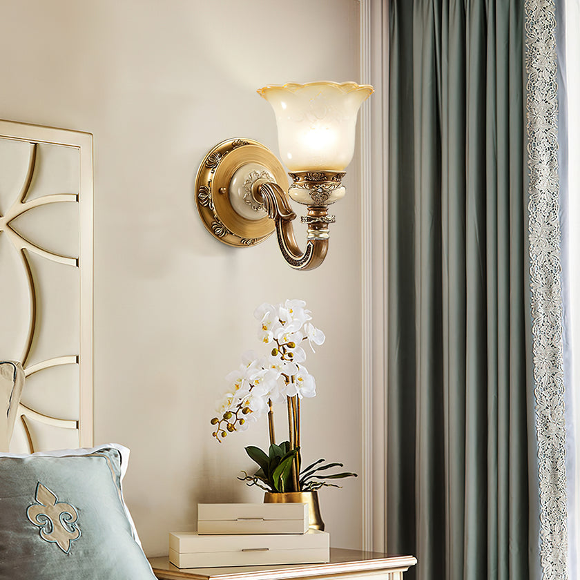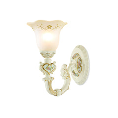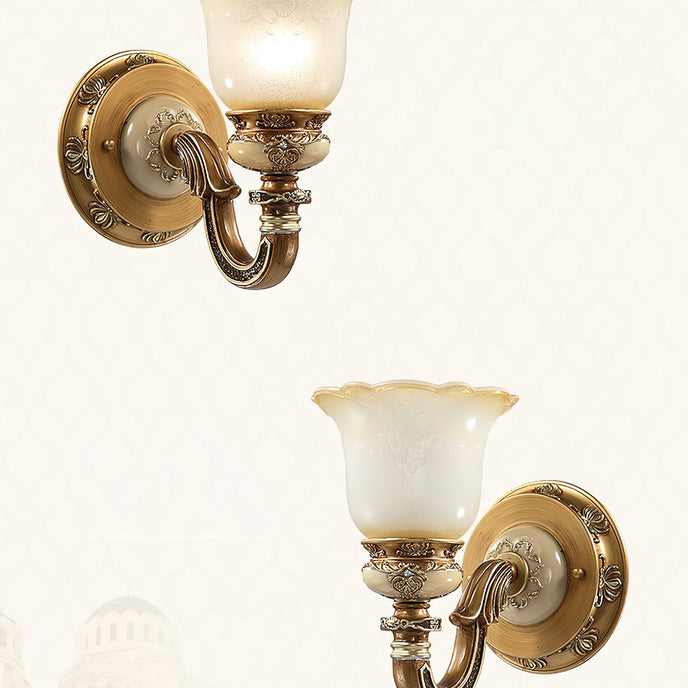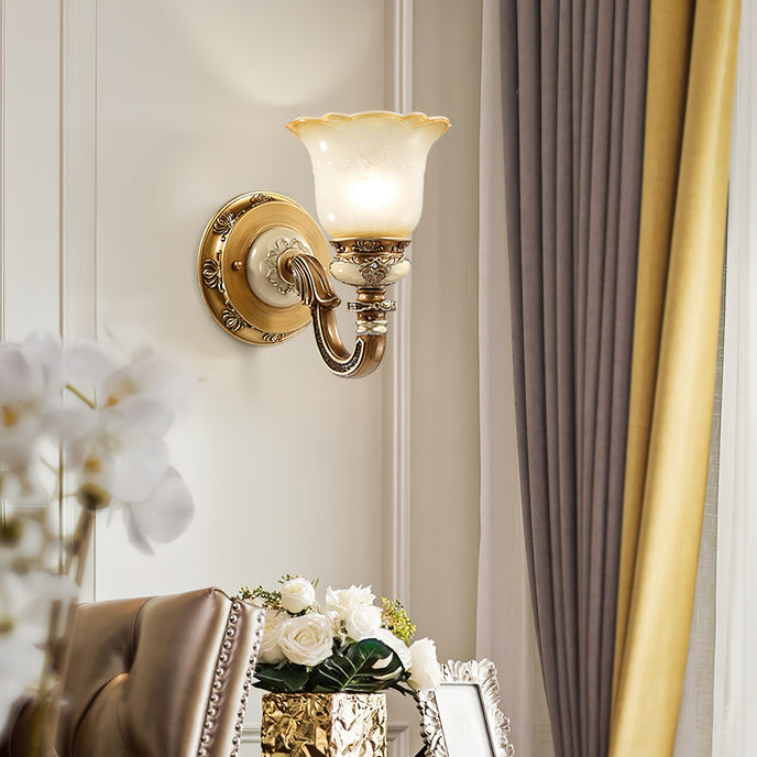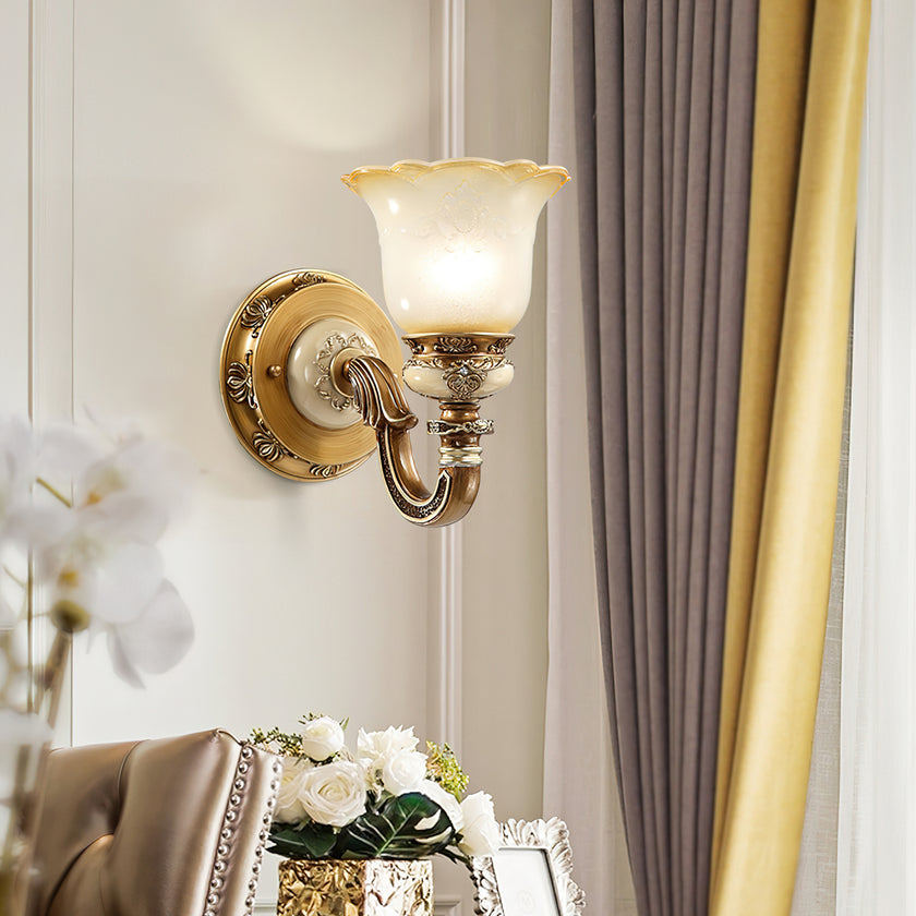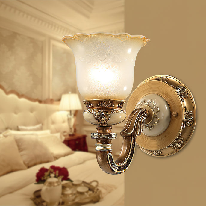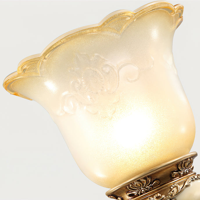 The Royal Bafang Wall Lamp is a sophisticated and exclusive statement piece crafted with strong iron and expertly carved resin for a timeless, regal look. Emitting a soft, warm light through a beautiful glass shade, this lamp will be the exquisite centerpiece of any room, radiating elegance to transform a space into a luxurious haven.