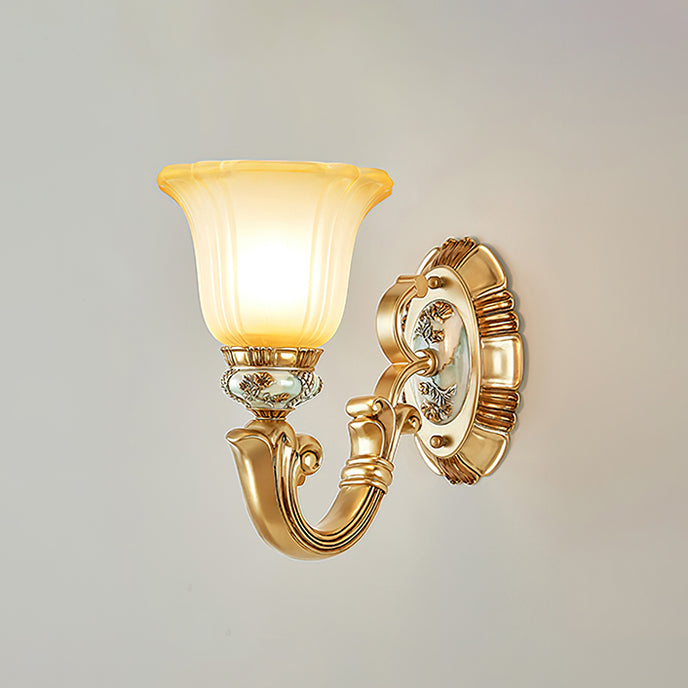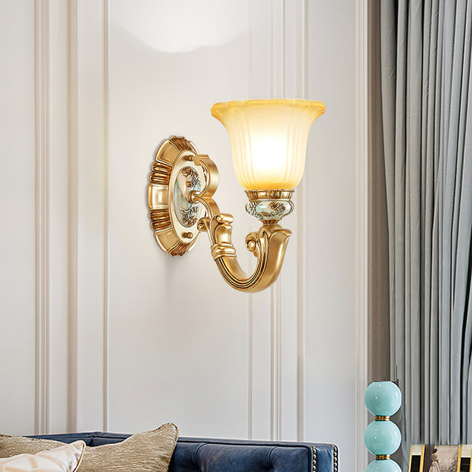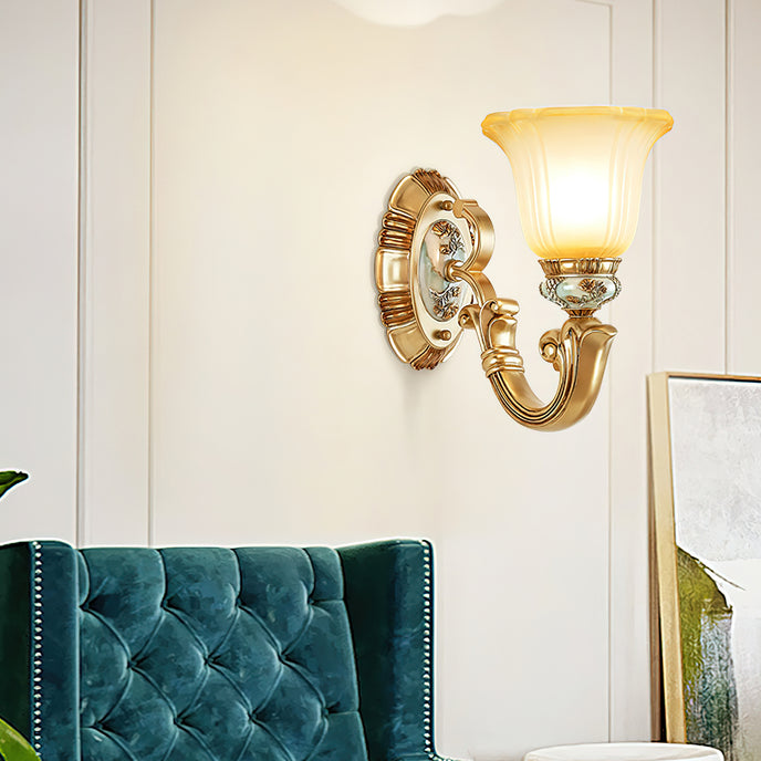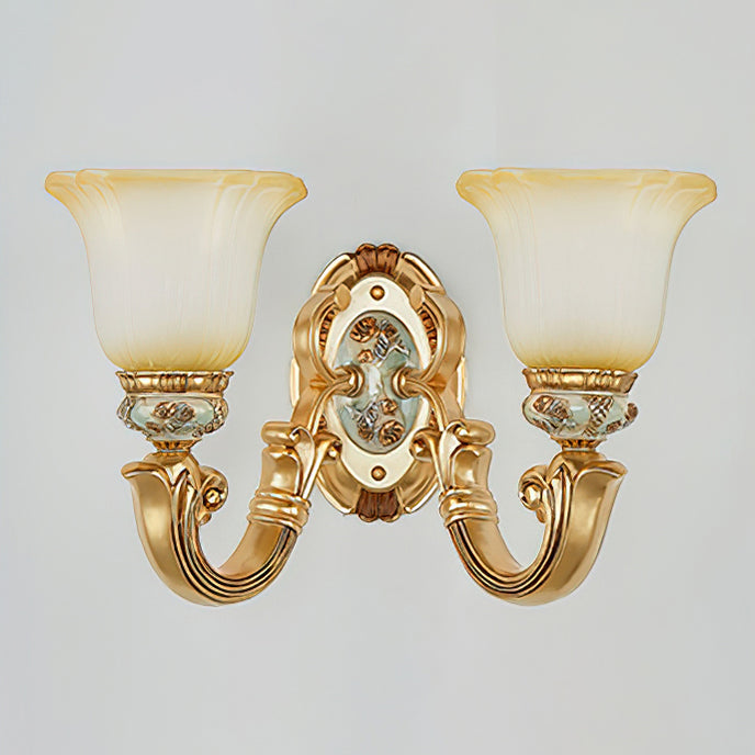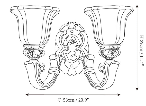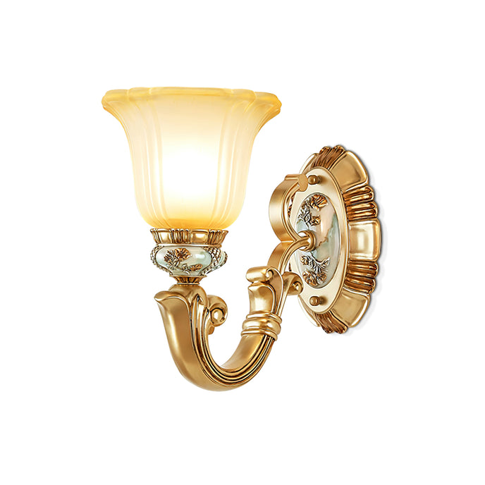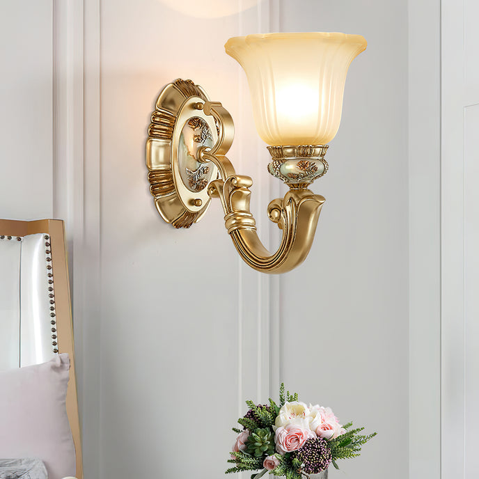 This Royal Big Horn Wall Lamp exudes sophistication and luxury, crafted with beautifully carved resin and a striking glass lampshade, providing a sophisticated statement piece for any space. Its strong iron structure and exquisite floral pattern add an elegant, romantic touch, while the soft warm light adds a royal charm and creates a cozy ambiance.