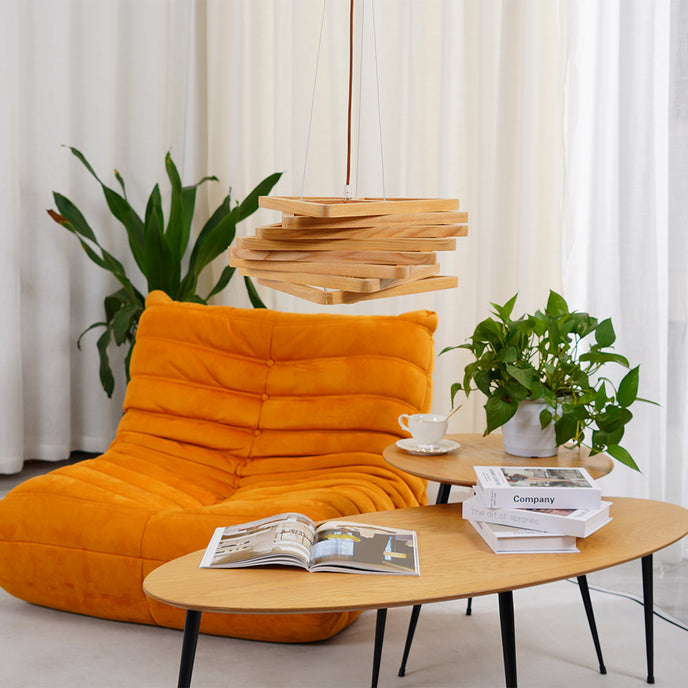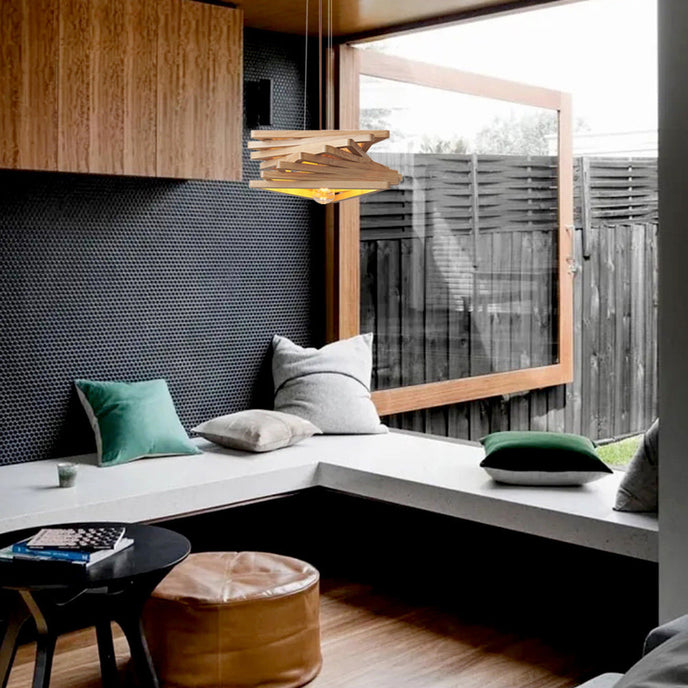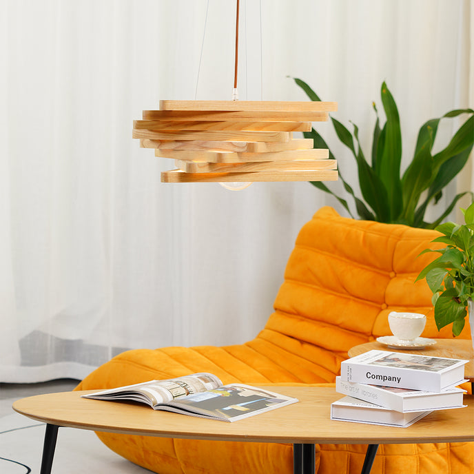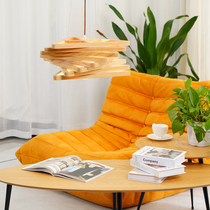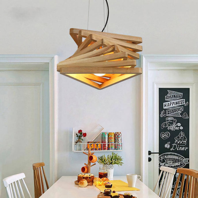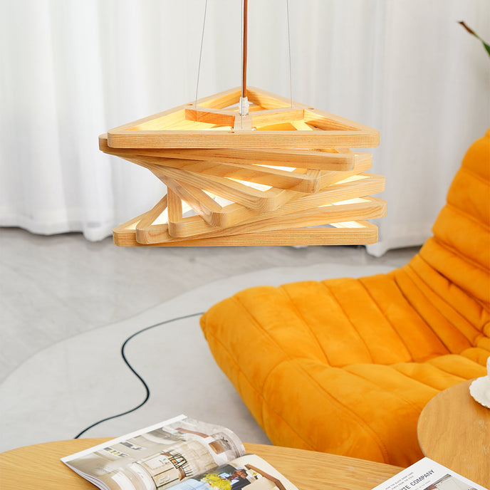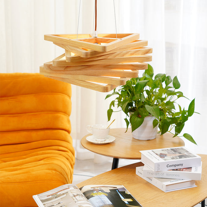 The Spiral Triangle Pendant Light logs are used in the high-end color design unique to nature, which is simple and quiet, showing a new state of beauty, rough in appearance, and perfect inwardly. With the rustic and romantic lamp shade to decorate your home.