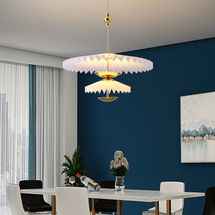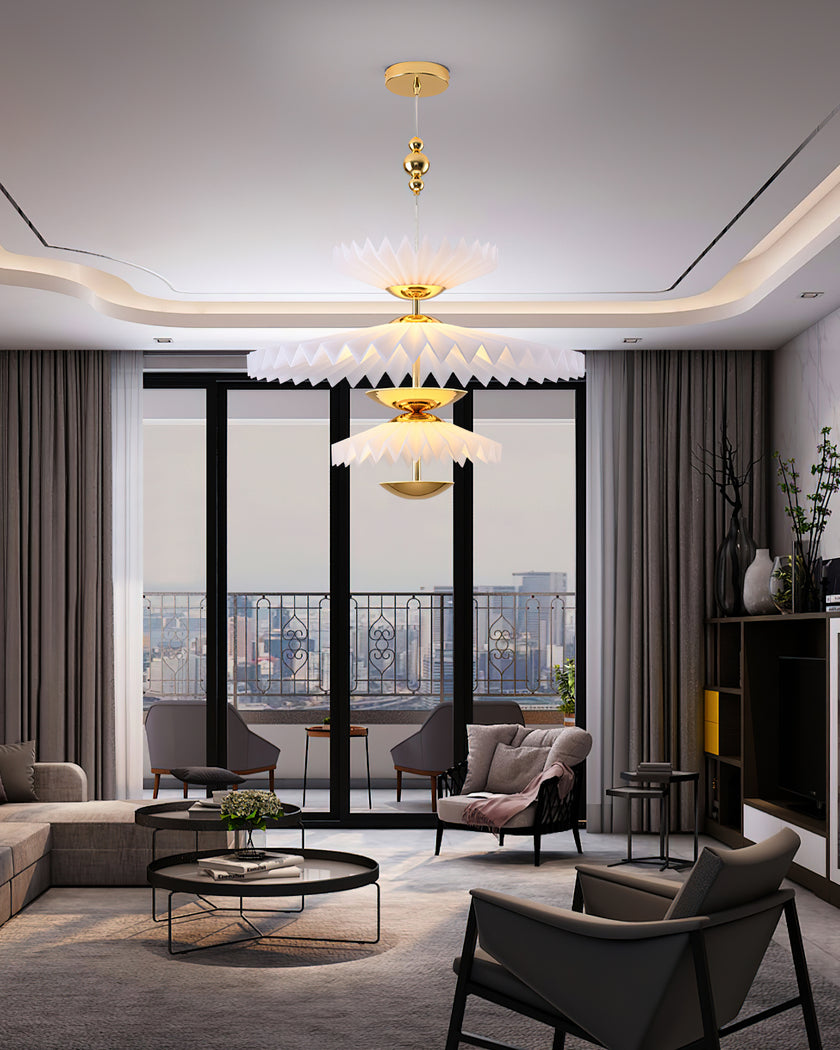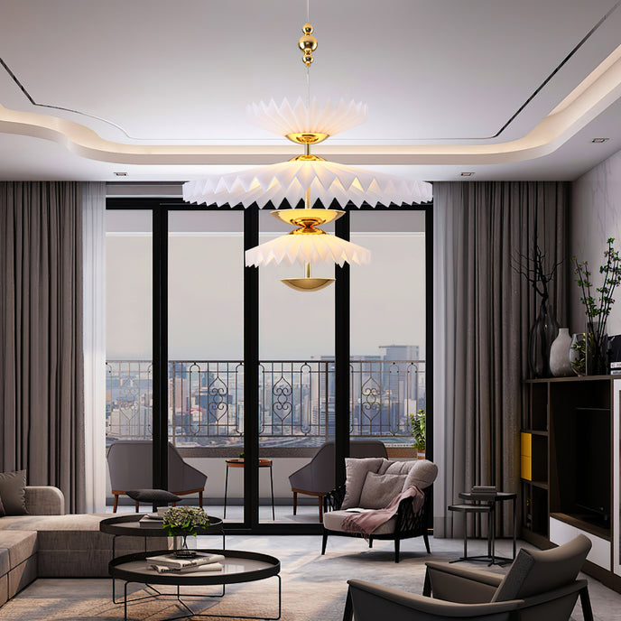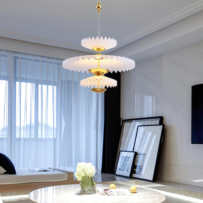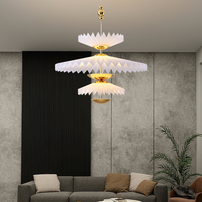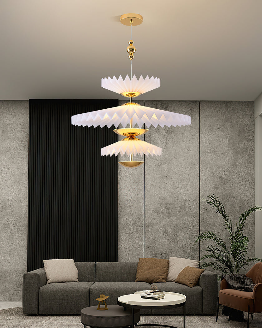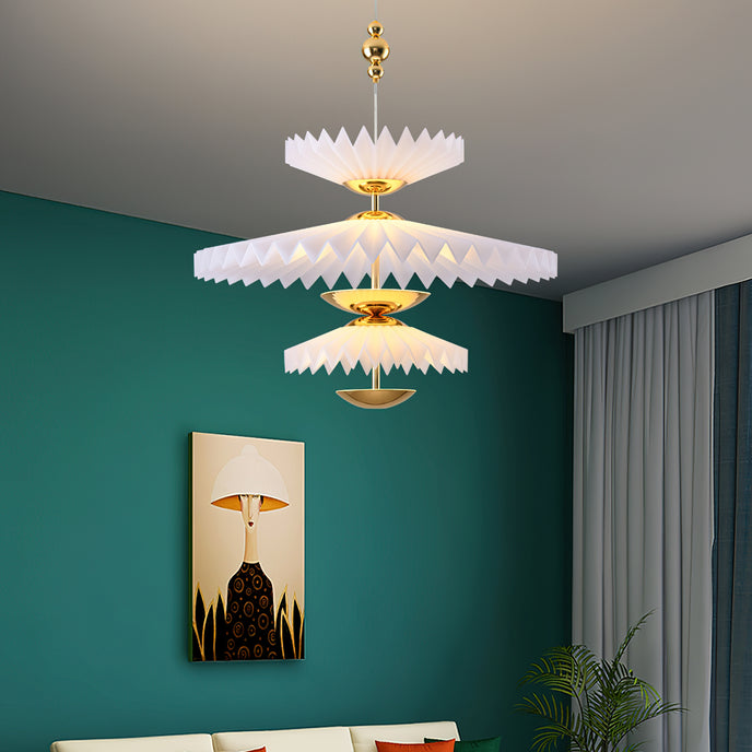Bring a unique and modern look to any space with the Stacked Paper Chandelier. Enjoy the multi-layered folding art that creates an eye-catching design. Utilize its exquisite electroplating technology and high-quality acrylic materials for superior performance. Instantly update any room with this modern lamp.