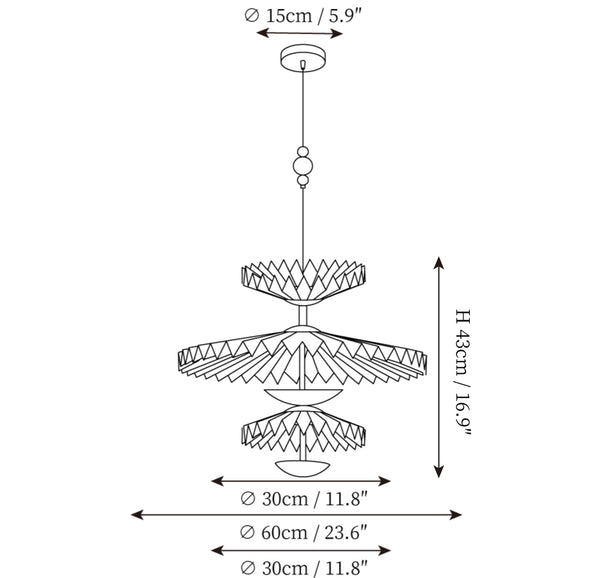 - Model D Size: Dia 30+60+30cm x H 43cm / ∅ 11.8+23.6+11.8″ x H 16.9″