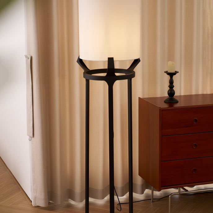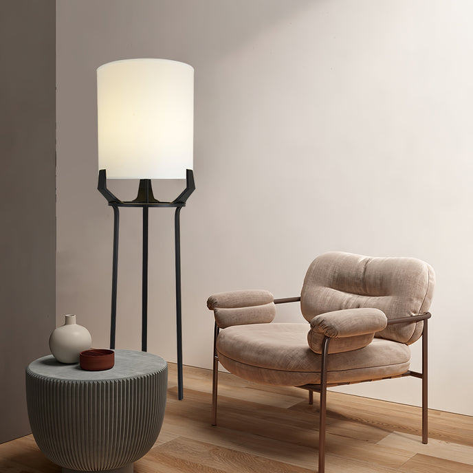 Experience contemporary aesthetics at its finest with this Three-Legged Lantern Floor Lamp. The white fabric shade gently diffuses light, creating a welcoming and cozy atmosphere in any space. Perfect for the bedroom or living room, this unique and decorative lamp adds style and functionality to your home.