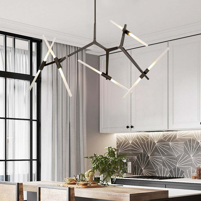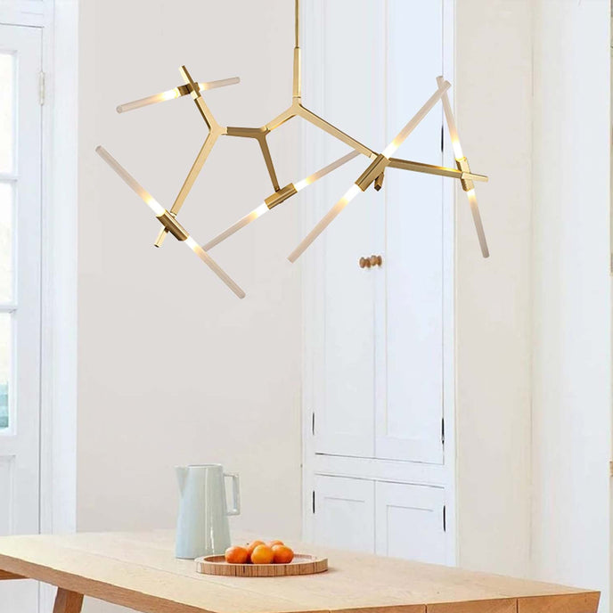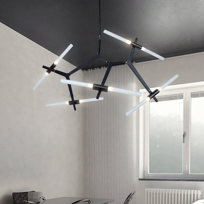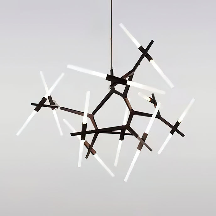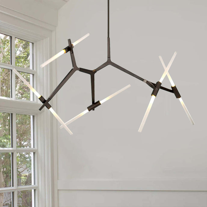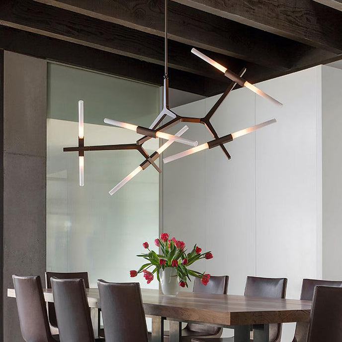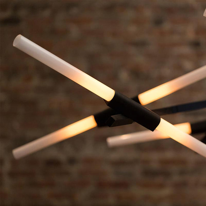 Originally conceived as a candelabra, Agnes takes its inspiration from the fictional heroine of the same name, a worker in the world's oldest profession during the 1849 California Gold Rush. The modular system would allow Agnes easy setup in her makeshift "workspace." In this version, glowing glass tubes replace the candles.