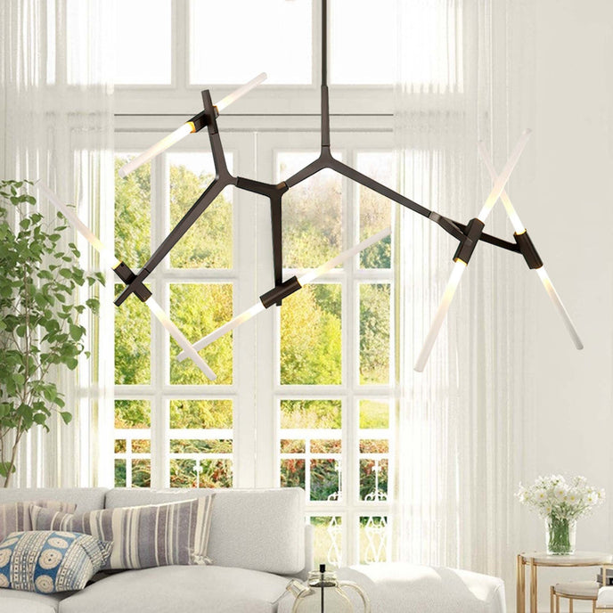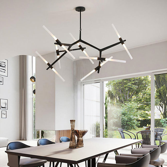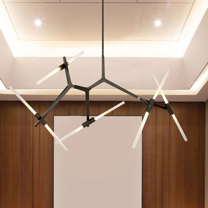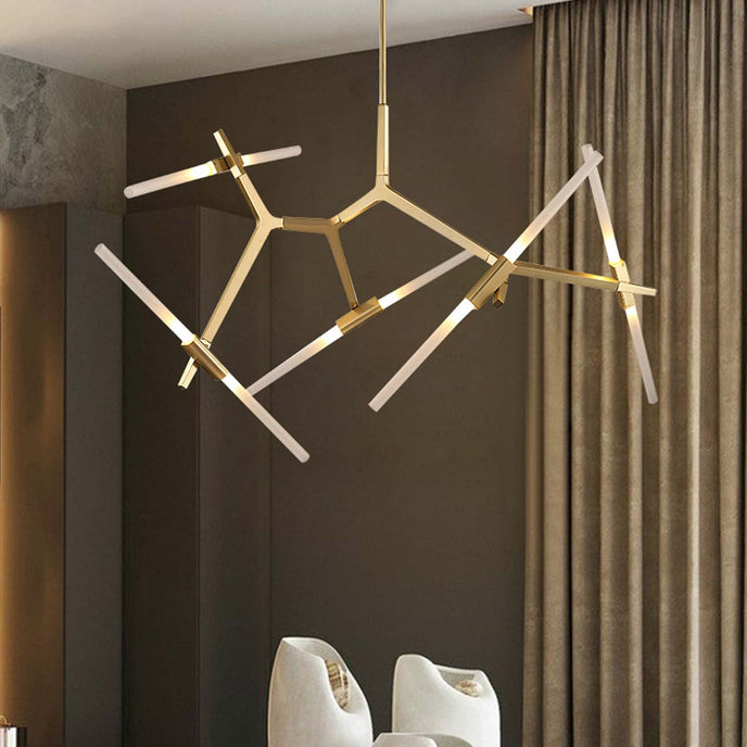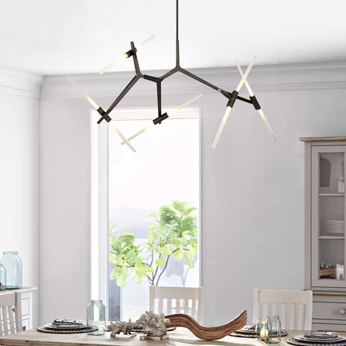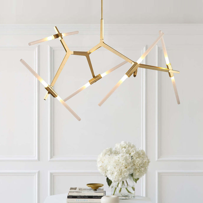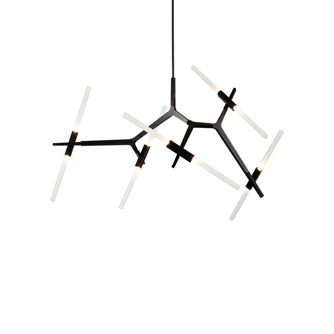 Originally conceived as a candelabra, Agnes takes its inspiration from the fictional heroine of the same name, a worker in the world's oldest profession during the 1849 California Gold Rush. The modular system would allow Agnes easy setup in her makeshift "workspace." In this version, glowing glass tubes replace the candles.