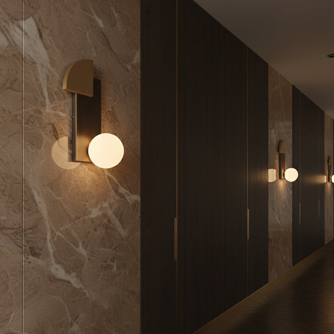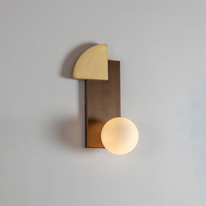 The Trent Wall Lamp by Mooijane features a refined interplay of geometric forms—a quadrant circle, a frosted glass globe, and a rectangular backplate. Crafted from medium bronze with a brushed brass finish, it blends sculptural precision with soft illumination. The opaque glass diffuses a gentle glow, making it a perfect accent for hallways, bedrooms, or modern living spaces. Elegant yet understated, this wall light embodies Mooijane’s dedication to thoughtful design and craftsmanship.
