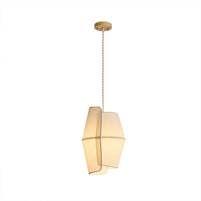 The Volute Pendant Lamp from Mooijane brings soft, sculptural beauty to any room with its layered fabric shade that wraps around the light like folded paper. When illuminated, it creates a warm, organic glow that adds gentle ambiance from above. The linen-textured material enhances its handcrafted feel, making it an elegant yet understated statement piece.