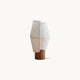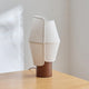 The Volute Table Lamp from Mooijane features a layered fabric shade that folds around the light like sculpted paper, creating a warm, organic glow when illuminated. Its solid wood base adds natural texture and balance, pairing beautifully with the linen-like shade for a calming, handcrafted feel.