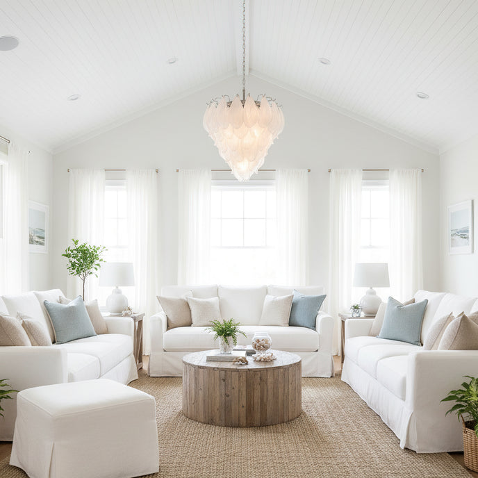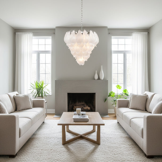 The Brielle Chandelier by Mooijane is crafted from hand-blown Murano glass, with cascading petal-like elements that emit a soft, luxurious glow. A stunning centerpiece for living rooms, dining areas, or entryways, it brings refined elegance and artistic sophistication to any interior.