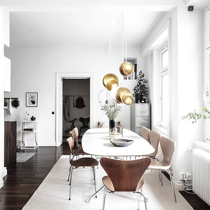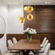 Circular Cluster Pendant Light It is the perfect combination of contemporary and industrial aesthetics. The spherical lighting fixture is supported by suspended wires. They can stand alone or hang together on a kitchen island. Another suggested aesthetic is that it can also be hung asymmetrically from either end of a bedroom headboard.