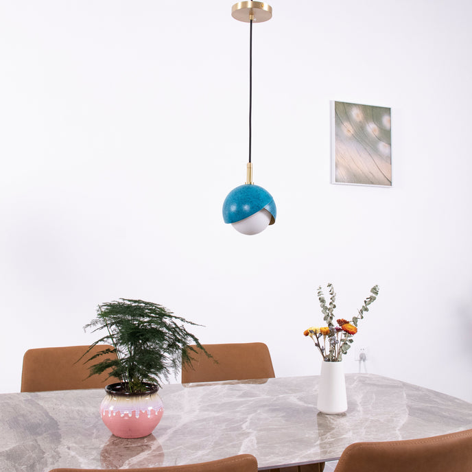 Dois hemisférios de latão entrelaçados sustentam um globo de vidro soprado à mão. Este acessório se presta à configuração criativa de nossos muitos acabamentos, o que significa que certamente será um destaque impressionante em qualquer espaço.