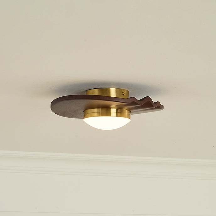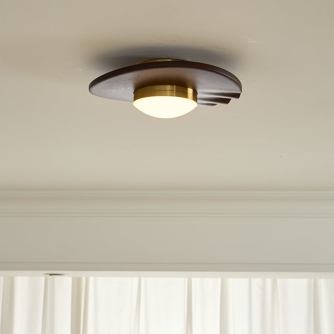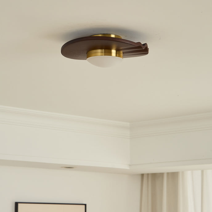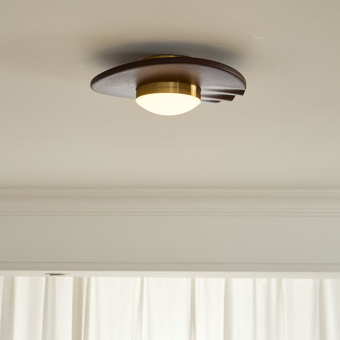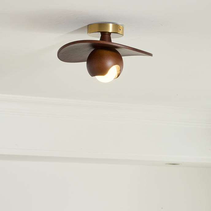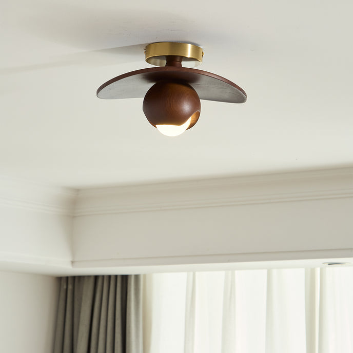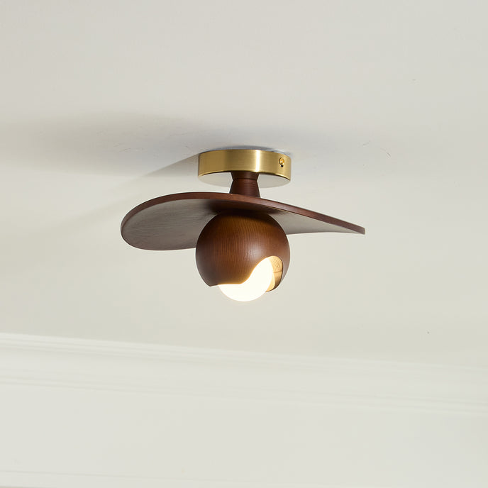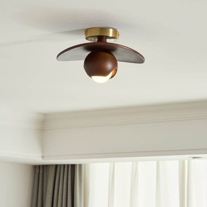 The Ebern Wood Ceiling Light by Mooijane combines clean geometry with natural warmth. Crafted from metal and solid wood, its design features a rounded wooden sphere and gently curved shade that evoke the silhouette of a floating hat. The sturdy metal base ensures stability, while soft light diffuses from beneath, offering both functional illumination and artistic charm. Ideal for entryways, hallways, or bedrooms, Ebern adds a calm, refined presence to any space.