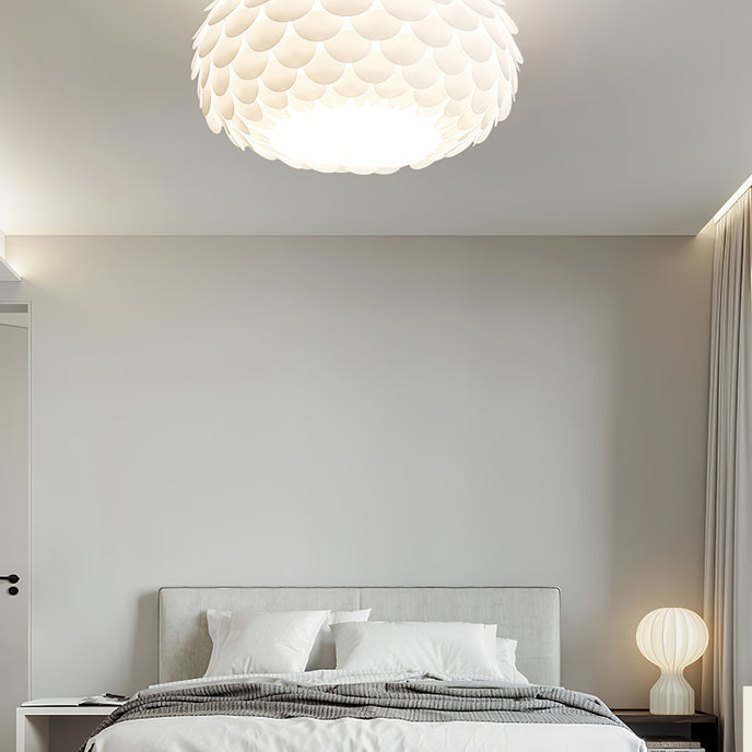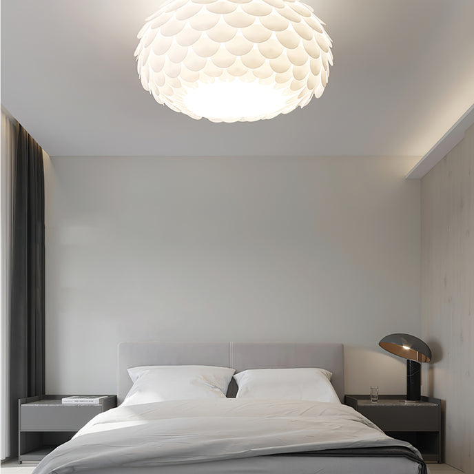 Oval lamp ERGES with an unusual structure. Let yourself be inspired by our stylish ceiling lamp. The entire structure resembles fish scales that reflect the light and illuminate the room. To get the best effect of warm light, energy-efficient light bulbs are recommended.