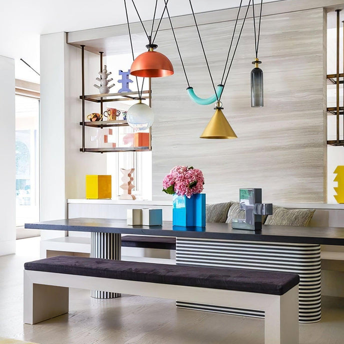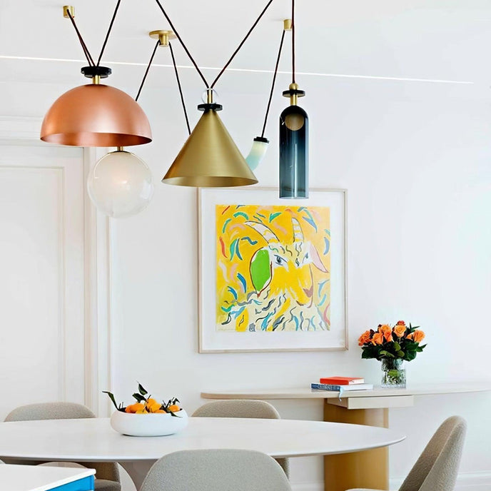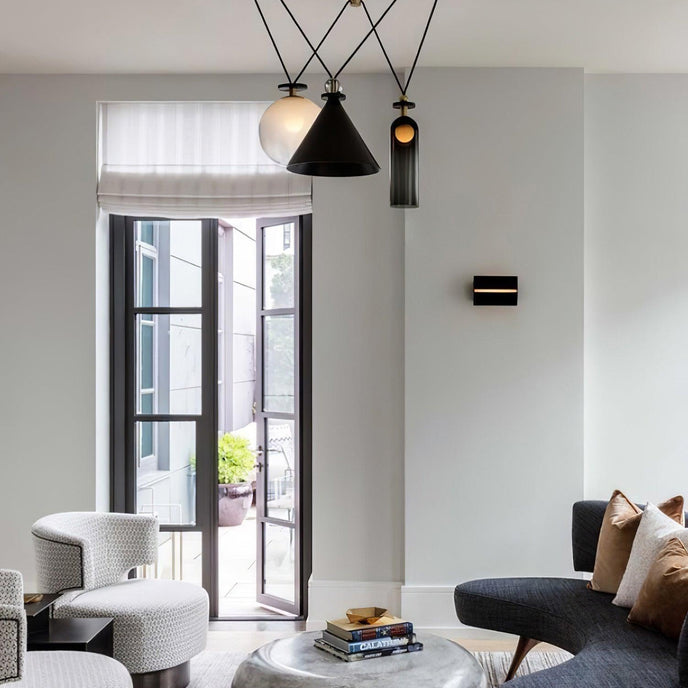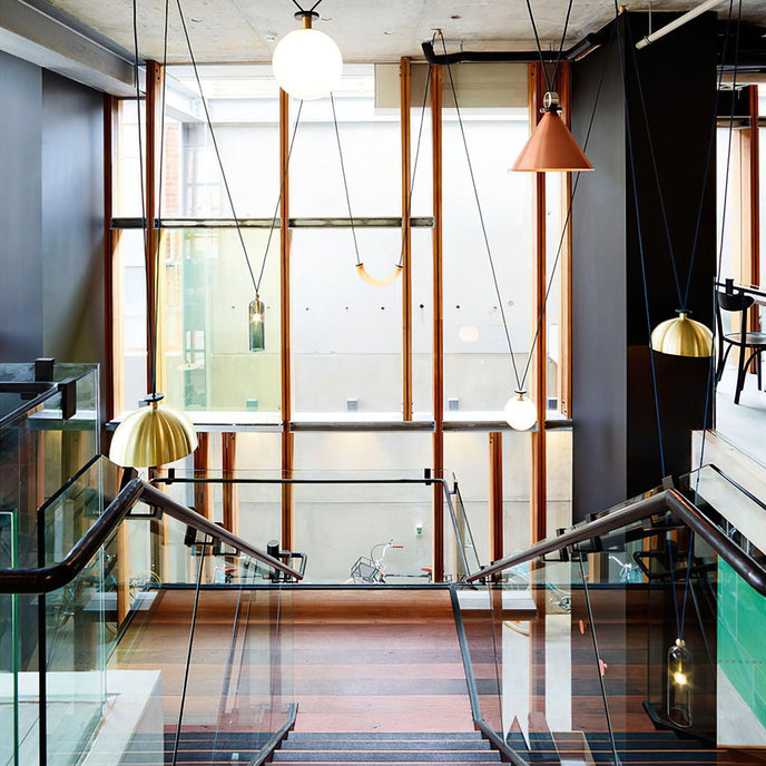 Shape Up is a versatile lighting series that celebrates bold geometric shapes: the playful juxtapositions upend traditional notions of symmetry in favor of dynamic spatial harmony. The modular system allows the shapes to be suspended and composed in response to a space's architecture and function, its shades discreetly networked via connecting cords and hubs.