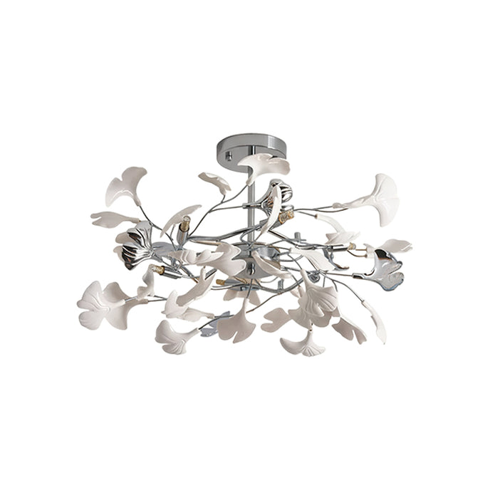 Este lustre de pétala de árvore de ginkgo de cerâmica mostra seu estilo luxuoso em design geral, material e tecnologia de fabricação. O corpo da lâmpada de latão é coberto com pétalas de cerâmica requintadas, que refletem a combinação perfeita de design de iluminação e plantas naturais.
