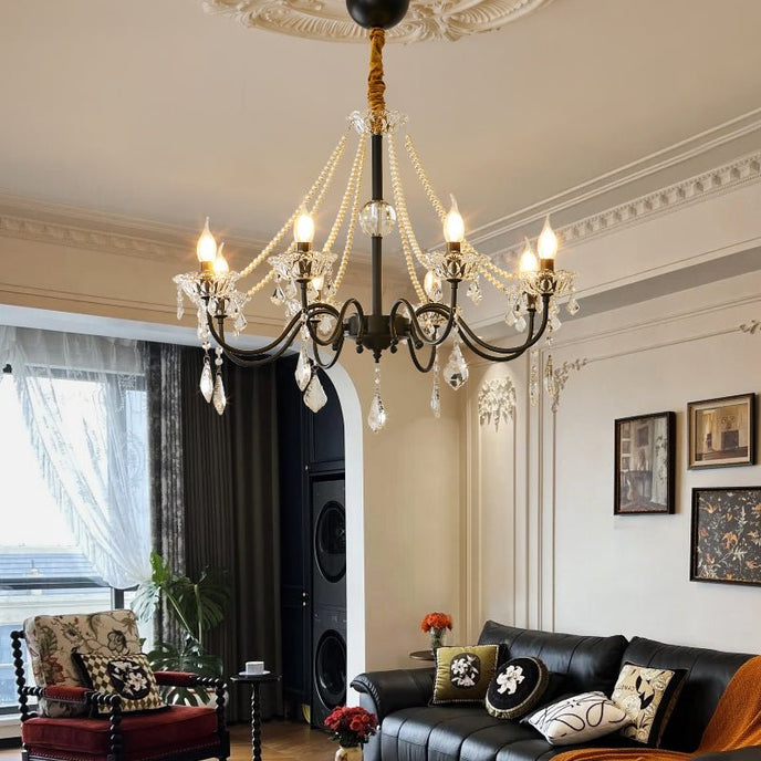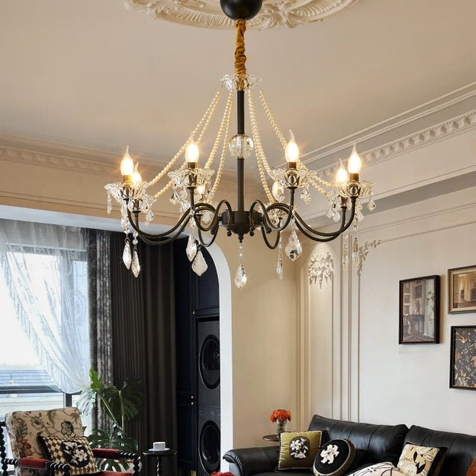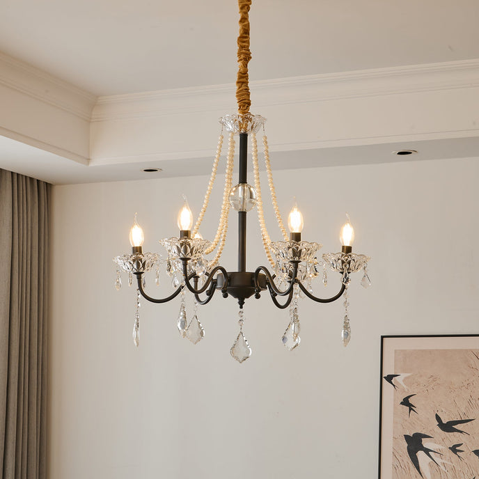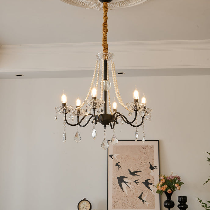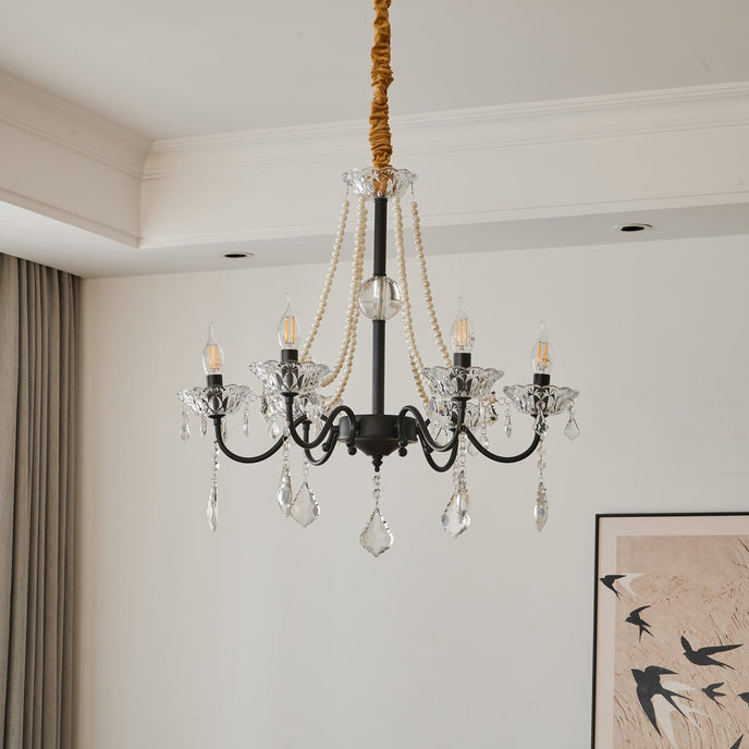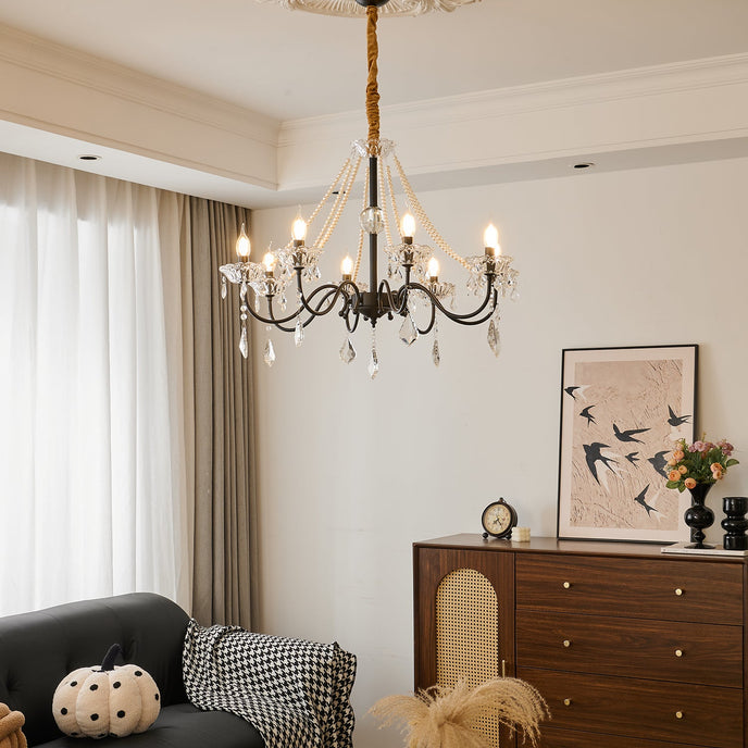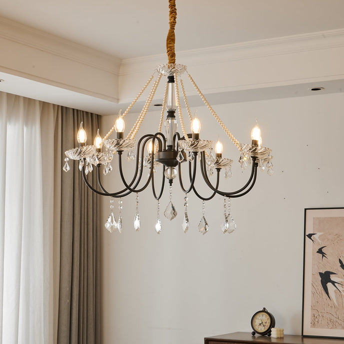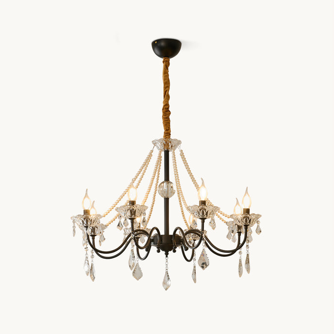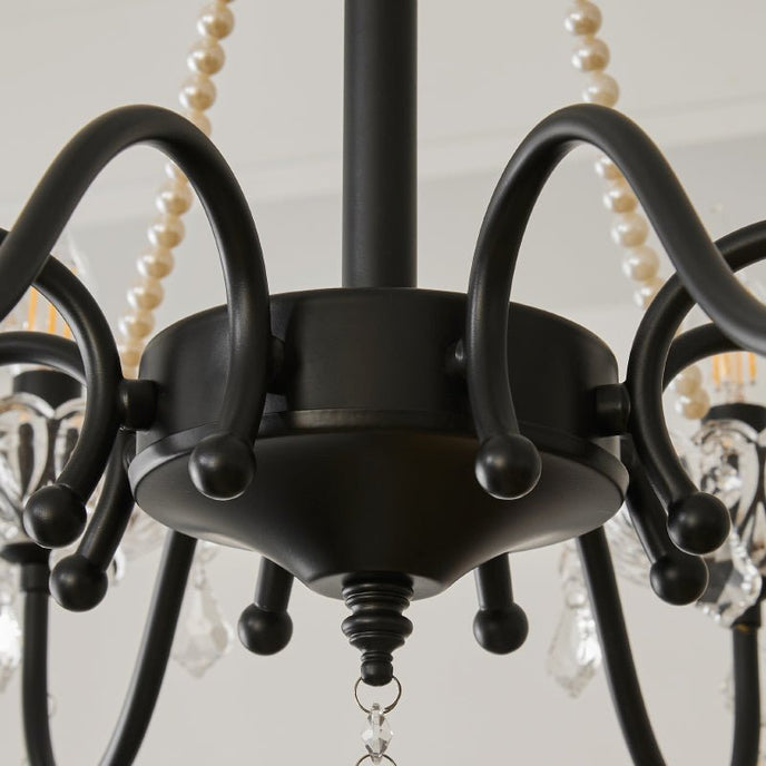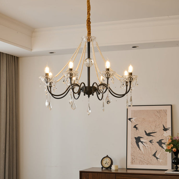 Elevate your home with the Greenville Crystal Chandelier from Mooijane. Featuring black-coated iron, shimmering crystals, lustrous pearls, and delicate glass elements, this piece exudes luxurious sophistication. Its timeless beauty and radiant finish make it the perfect centerpiece for elegant living rooms, dining rooms, or grand foyers.
