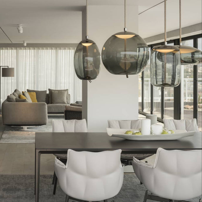 The Modern Blown Glass Pendant Lights uses hand-blown glass spheres and is crafted with care to create a classic fusion of beauty and modernity. Enjoy the Blown Glass Pendant Lights that adds a touch of elegance to any space.