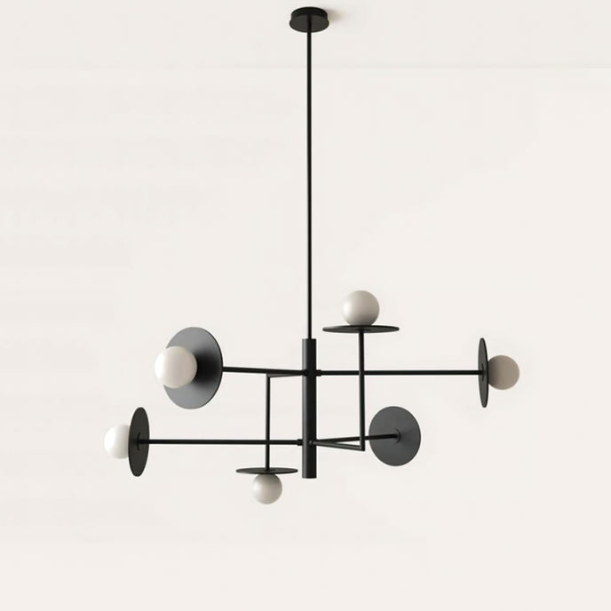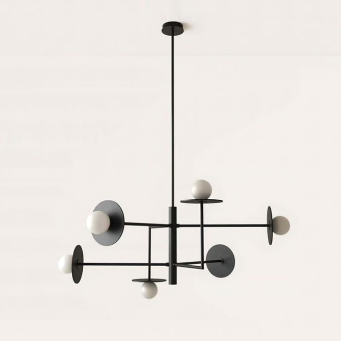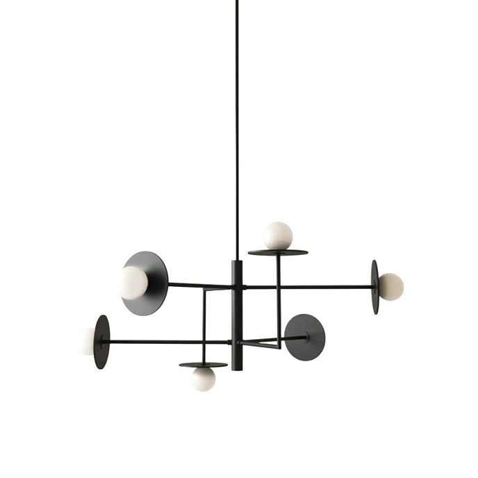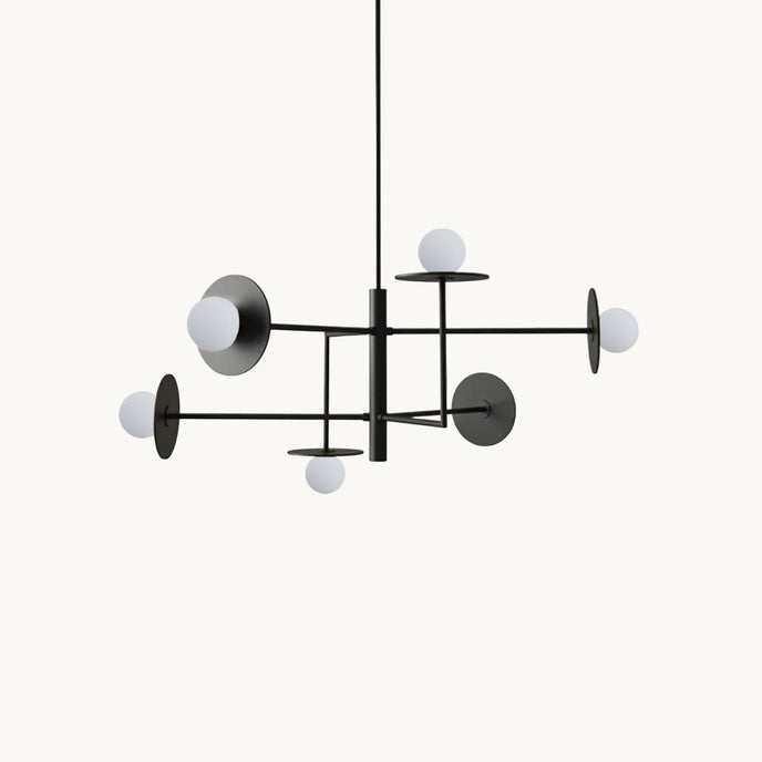 Elevate your space with the Mooijane Miro Chandelier. Its circular and linear design creates a stunning display that captures attention. With six LED modules suspended on delicate stems, this chandelier brings a sense of lightness and artistry to any room. Perfect for dining or living areas.