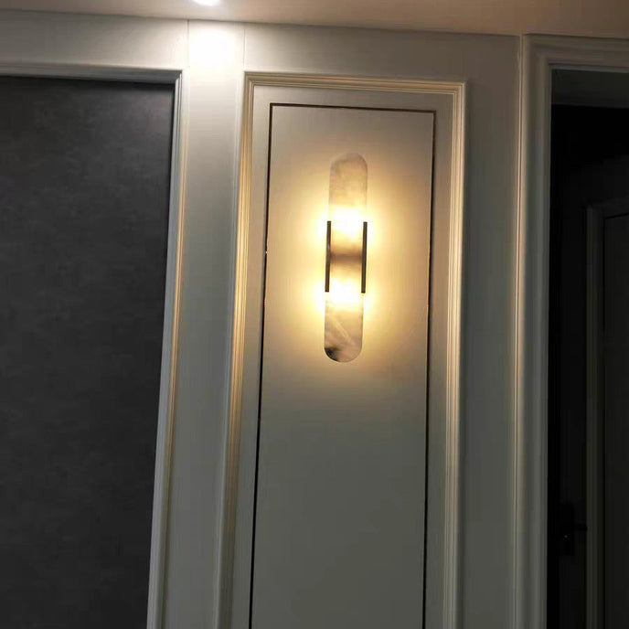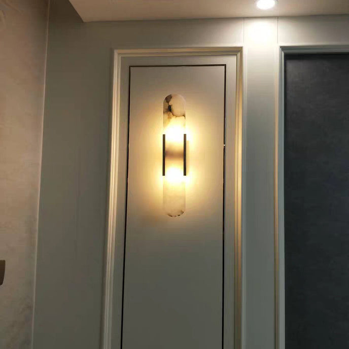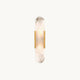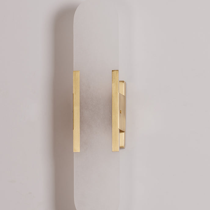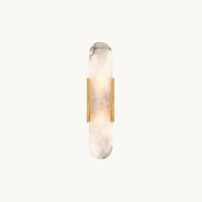 Emparelhando sem esforço alabastro natural e detalhes de metal elegante em uma forma geométrica simplificada, o Melange Elongated Sconce exala um refinamento moderno enquanto enfatiza a beleza do natural pedra. Esta arandela apresenta alabastro natural esculpido à mão com detalhes em latão.