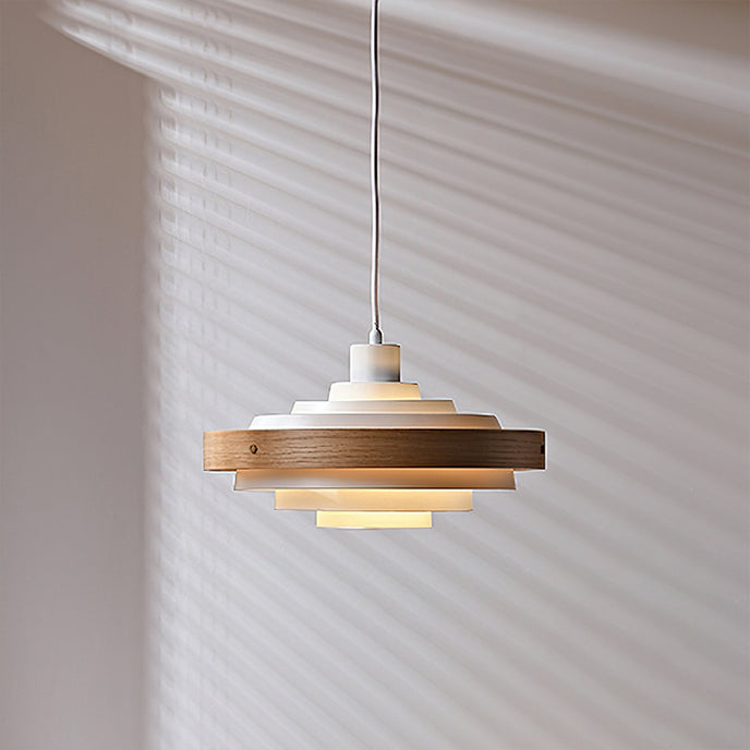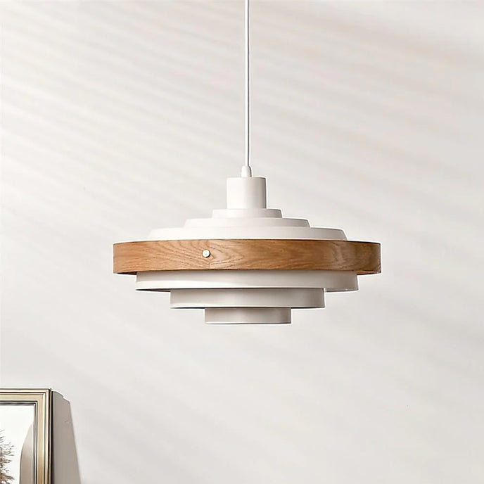 Elevate your home decor with this exquisite Modern Drum Pendant Light from Mooijane. Crafted with a wood drop design and multiple circular layers, this single-cord ceiling light adds a touch of sophistication and joy to your kitchen island, dining room, or bar. Its timeless appeal ensures it never goes out of style.