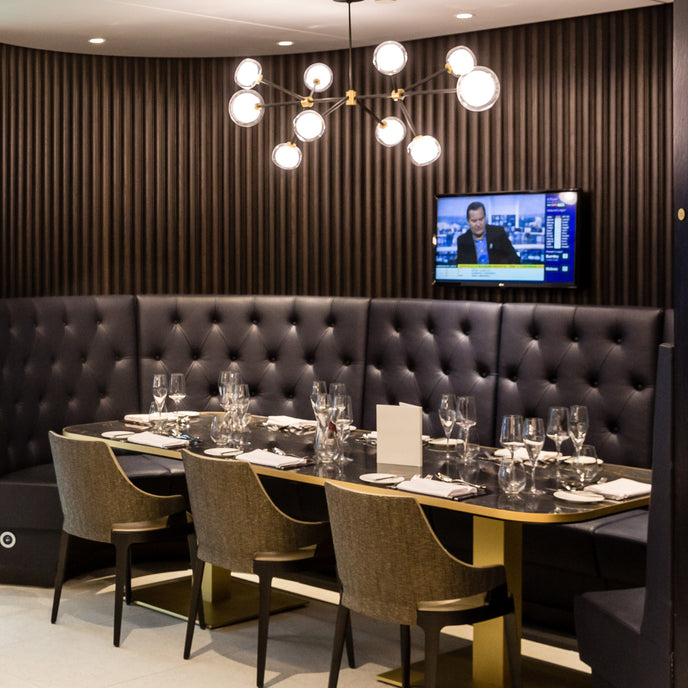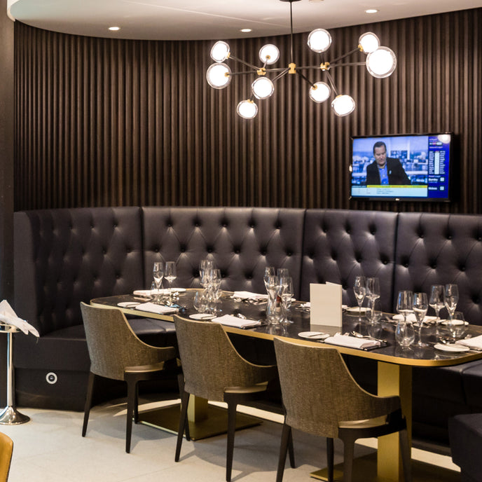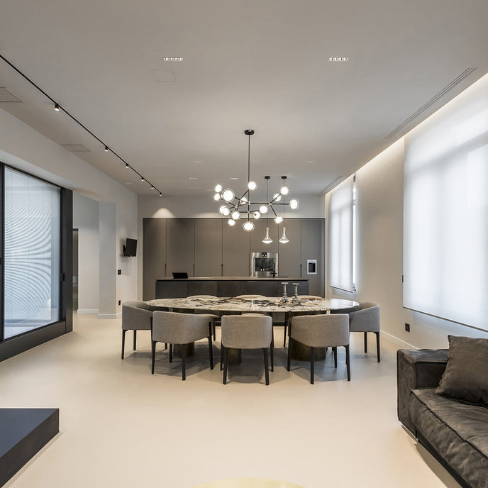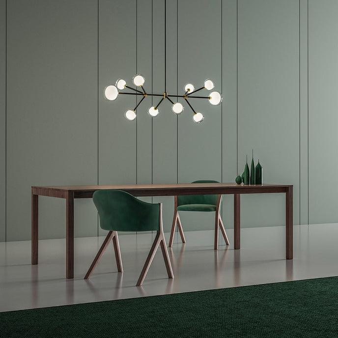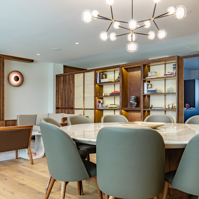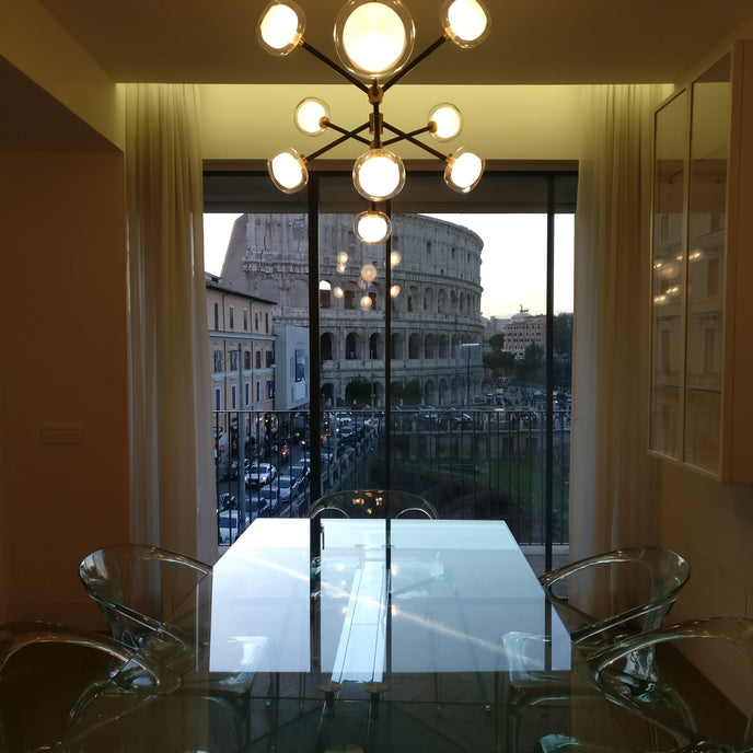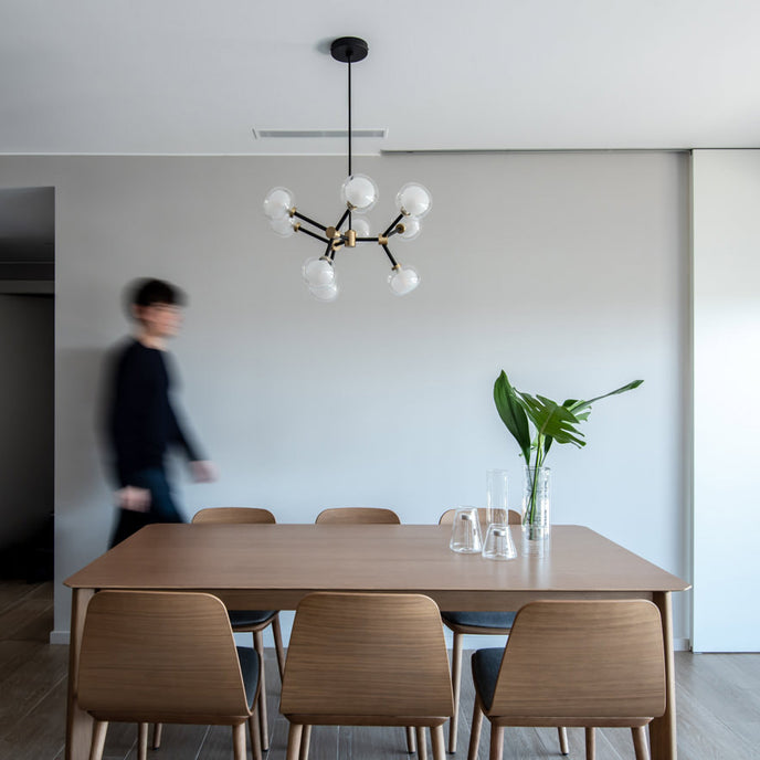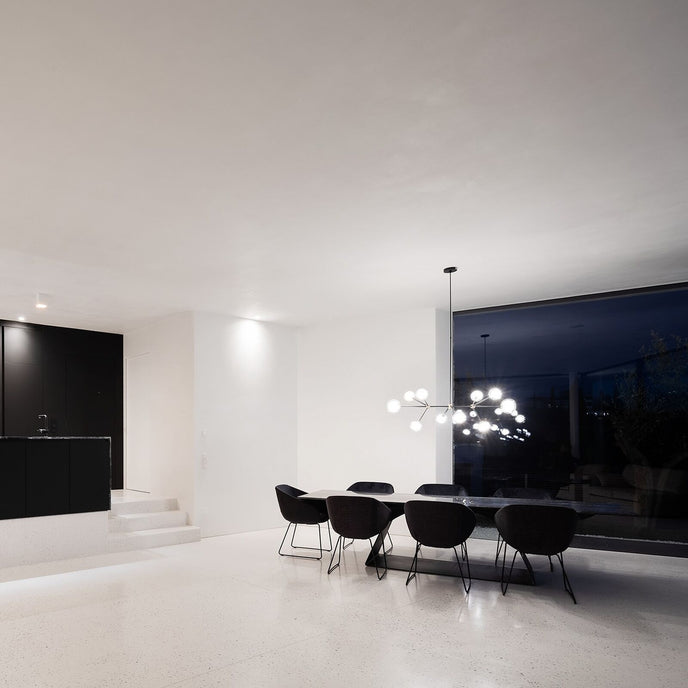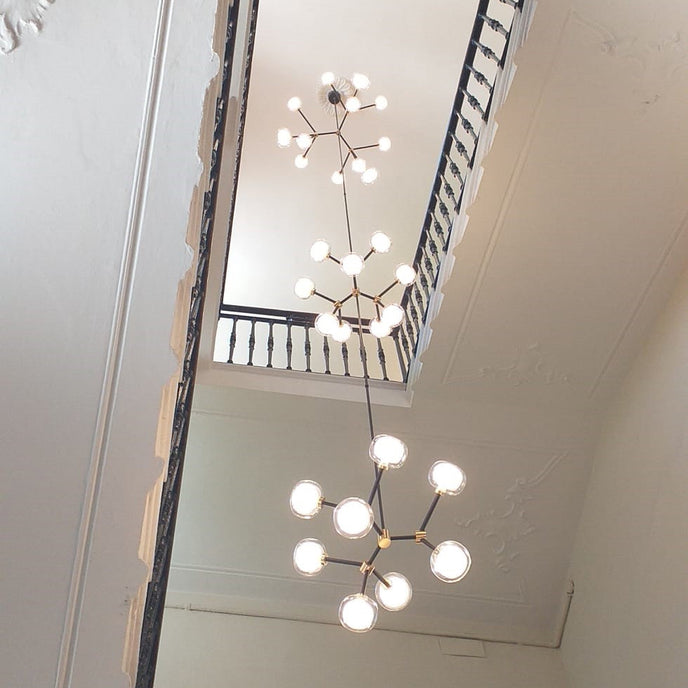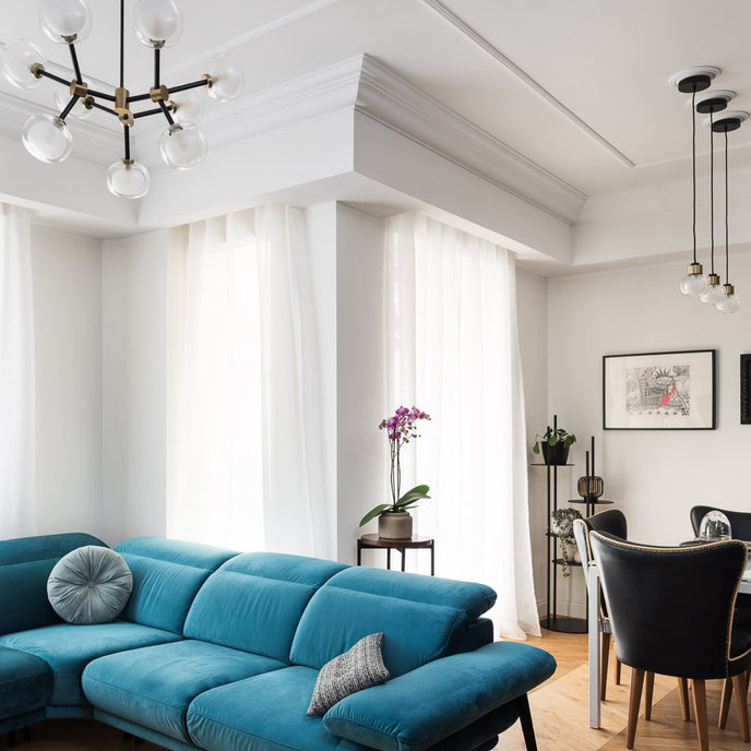 A sofisticação elegante do Candelabro Nabila é inspirada na busca do espaço sideral nos anos 1950. Modelado a partir do Sputnik, o quadro esférico de dupla face de Nabila em preto fosco com detalhes em cromo preto e discos de vidro borosilicato Smoke ou preto fosco com latão escovado e discos de vidro borosilicato transparente traz um toque único a um interior contemporâneo. Coloque na entrada ou sobre a mesa de jantar para completar sua estética.