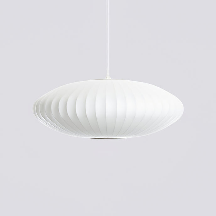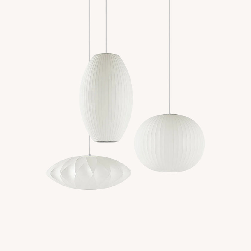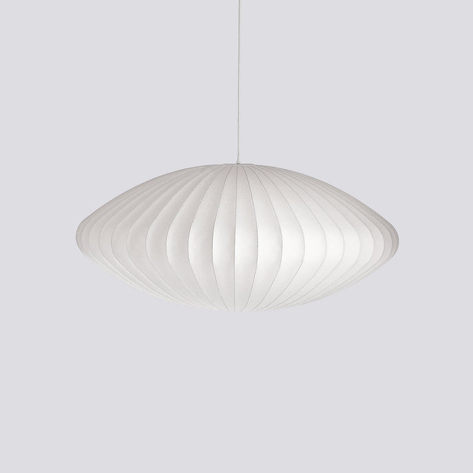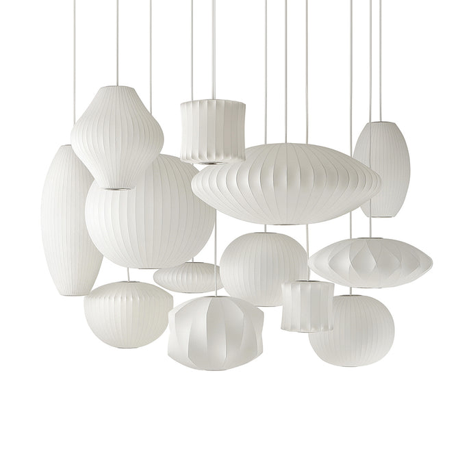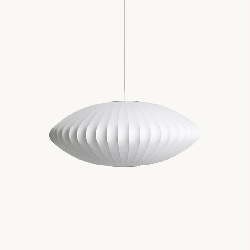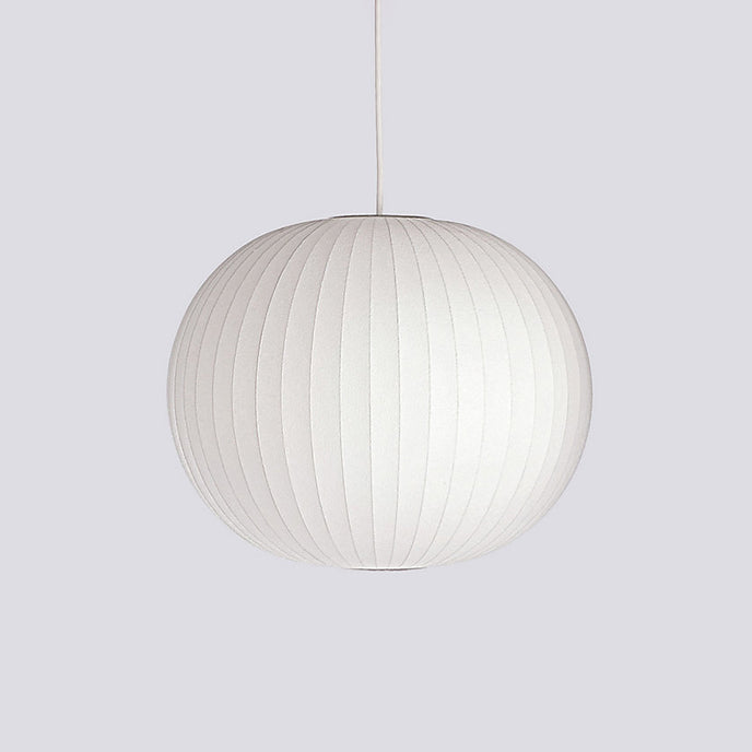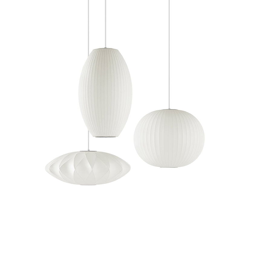 O pingente de bola cruzada Nelson Ball é baseado no design original de 1952 do engenhoso e engenhoso George Nelson. Utilizando técnicas militares dos EUA e suprimentos excedentes após a Segunda Guerra Mundial, ele foi capaz de criar o primeiro conjunto de Nelson Bubble Lamps; cobrindo-os com um spray de plástico branco translúcido que resulta em uma estética suave e orgânica quando iluminado.