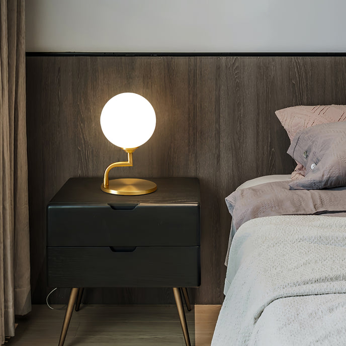 The Penelope Table Lamp is a creative and romantic design. With the big bulb supported by the copper base, the lamp is like a big toffee. It is made of high-quality copper and glass materials, and its finish of it is Milky White. The designer remakes the structure of the lamp to highlight the texture of all copper and make the furniture even better. The hand-blown glass lampshade is also a big plus.